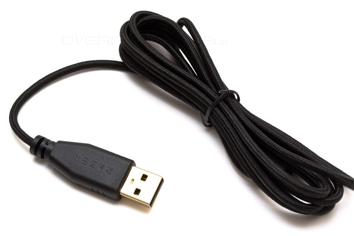 Шнур в нейлоновой оплетке имеет длину 2,1 м. Он очень мягкий и гибкий. Ферритовые накладки отсутствуют. USB-разъем позолочен.