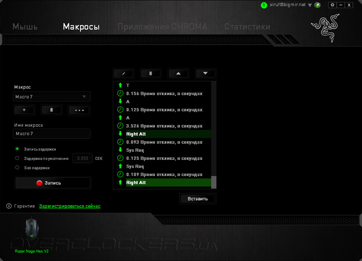 Встроенный редактор макросов мы уже неоднократно наблюдали в прошлых обзорах продуктов компании, и он ничуть не изменился внешне и по принципу действия. Последовательно записываются все нажатия клавиатуры и мыши с временными задержками или без них. Запись движения курсора и направления прокрутки невозможна. Все макросы хранятся в памяти облачного сервиса и на локальной машине.