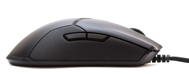 Левая боковина Viper покрыта мелкой текстурной резиновой накладкой, которая обеспечивает идеальное сцепление с пальцами. Посередине сверху есть две боковые клавиши. Они чуть туже среднего по требуемой силе активации, нажимаются с приглушенным щелчком.