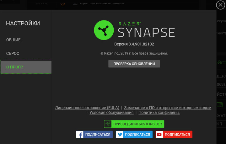 В качестве программного обеспечения Razer Viper использует универсальный драйвер Razer Synapse 3 (актуальная версия — 3.4.901.82102). Драйвер устанавливается вместе с программой контроля учетных записей и фирменных приложений Razer Central. Через нее происходит и старт Synapse. ПО обновляется как автоматически, так и принудительно.