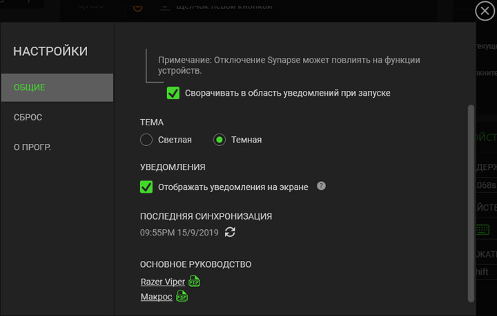 В настройках можно выбрать один из десятка поддерживаемых языков интерфейса, и настроить параметры автозапуска драйвера. Отсюда же доступно официальное руководство по продукту, а также выбор цвета интерфейса — светлый или темный.