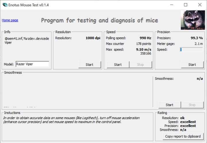 Обновленный оптический сенсор PAW3390 является незначительным улучшением PMW3389, ведущим свой род от PMW3360. Работает он отлично во всем диапазоне разрешений. Точность позиционирования курсора близка к идеалу. Высокая максимальная скорость и ускорение не дадут пользователю возможности вызвать срыв курсора, паразитных моментов в использовании обнаружено не было. Высоту отрыва можно выставить в минимум при условии, если есть хорошая игровая поверхность. Одним словом, это один из лучших датчиков для соревновательных игр. Еще одна интересная особенность состоит в том, что Mouse Test впервые так и не смог замерить уровень сглаживания у этого сенсора.