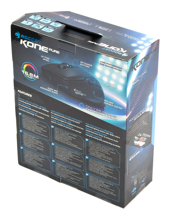 Серия Kone является базовой в линейке игровых мышей от Roccat и на сегодня насчитывает шесть вариантов модификаций, которые отличаются начинкой и оформлением, но сохраняют приблизительно одинаковый дизайн формы своего корпуса. Поскольку компания не особо озаботилась разведением своих моделей по названию, и наименование нашего сегодняшнего предмета для обзора звучит как Kone Pure (ROC-11-725), чтобы не вводить читателя в заблуждение, отметим, что данная мышь принадлежит к модельному ряду 2017-го года и оснащена сенсором «Owl-Eye». А теперь обо всем в деталях.