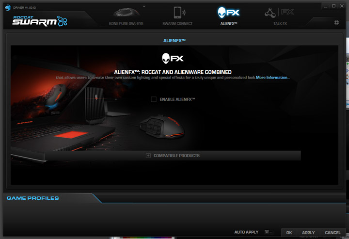 Раздел AlienFX позволит обладателям техники Alienware синхронизировать свои устройства с продуктами Roccat.