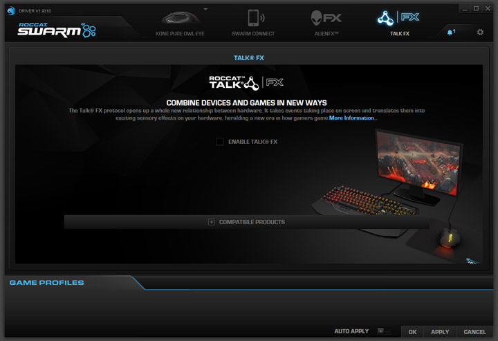 А раздел Talk FX отвечает за синхронизацию отдельных устройств Roccat между собой.
