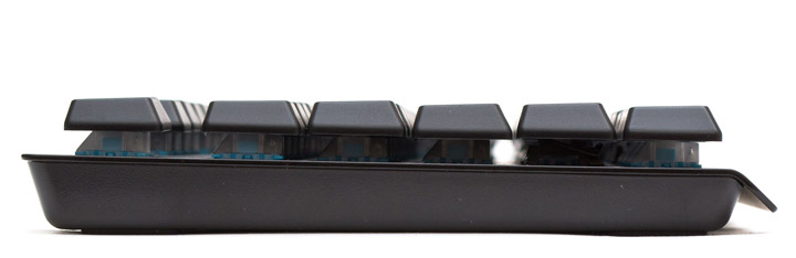 Благодаря использованию тонкого корпуса, схемы расположения кнопок «скелетон» и низкопрофильным колпачкам клавиш, данная клавиатура получилась довольно тонкой если сравнивать ее другими видами «механик». Малая высота способствует и тому, что без подставки под ладони вполне возможно обойтись.