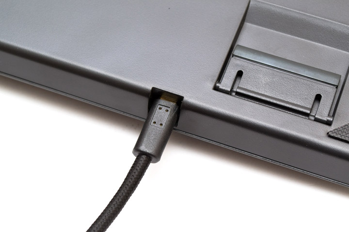 Дополнительных портов клавиатура не имеет. Гнездо для подключения кабеля расположено сзади, в правой части корпуса, на грани цифрового блока клавиш.