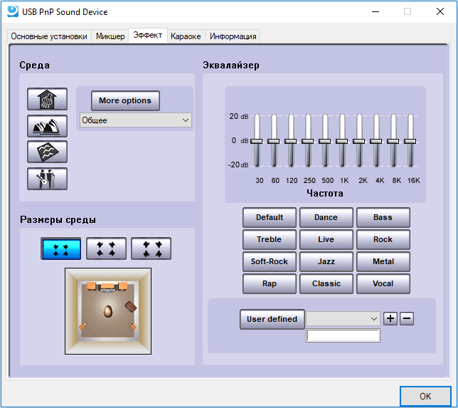После установки драйверов перед нами предстаёт интерфейс управления, который выглядит визуально устаревшим. Да и удобство его, честно признаюсь, далеко от совершенства. Разнообразные настройки разнесены по нескольким вкладкам, хотя их легко можно было уместить в одном окне. Некоторые настройки, несмотря на свою активацию, мало влияют на звучание гарнитуры. Любителей поиграться со своим голосом я разочарую — все эффекты накладываются только на ваш звук. Это означает, что собеседник не услышит «мультяшности» или «могильности» вашего голоса при управлении высотой его записи, собственно, как и эха. Будем надеяться, что в последующих версиях качество утилит поправят.
