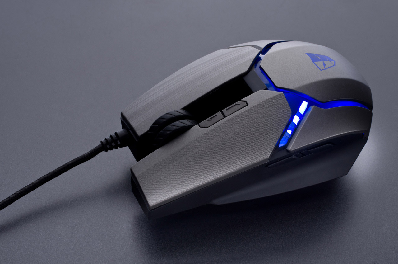 - Gandiva H1L — ключевой особенностью модели стал футуристический дизайн с контрастной светодиодной подсветкой. Лазерный сенсор имеет пять уровней чувствительности с максимальным значением 5600 точек на дюйм;