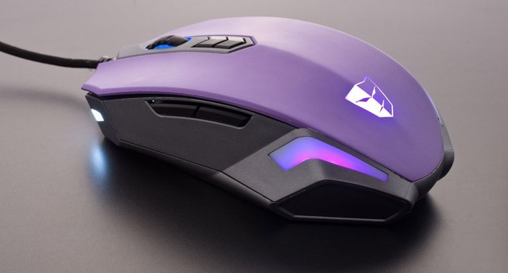 - Gungnir H5 — мышь бюджетного класса ориентирована преимущественно на игры жанра FSP (шутеры от первого лица). Оформление выполнено в контрастной фиолетовой расцветке. Устройство оборудовано семью программируемыми кнопками, зональной LED-подсветкой и эргономичной формой. Оптический датчик Avargo ADNS-3090 работает в пределах 450–3500 cpi с регулируемой частотой опроса;