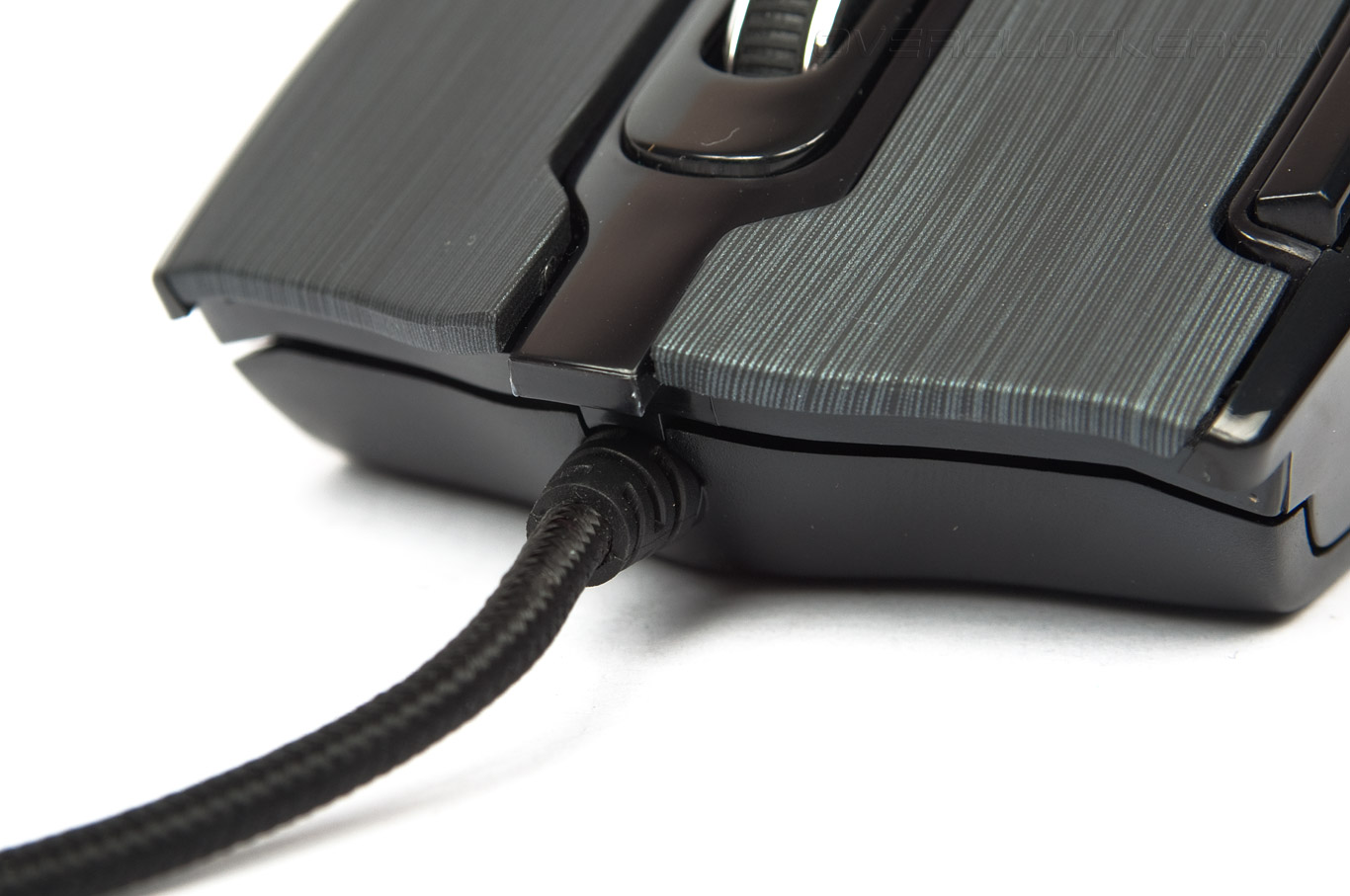 Устройство имеет проводной тип подключения и синхронизируется с ПК при помощи USB-кабеля длинной 1,8 метра. Средний по толщине провод свободно гнётся во всех направлениях, не сковывая движения руки при управлении. Рядом со штекером закреплено ферритовое кольцо для подавления электромагнитных помех и шумов. Внешне кабель закрыт плотной нейлоновой оплеткой.