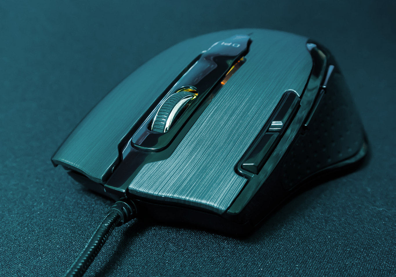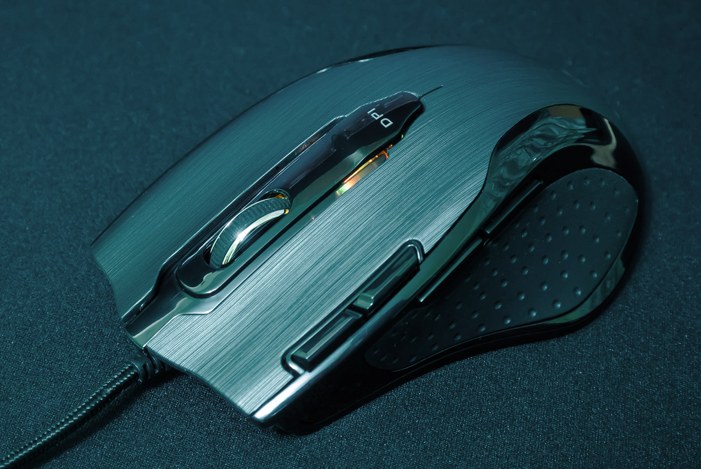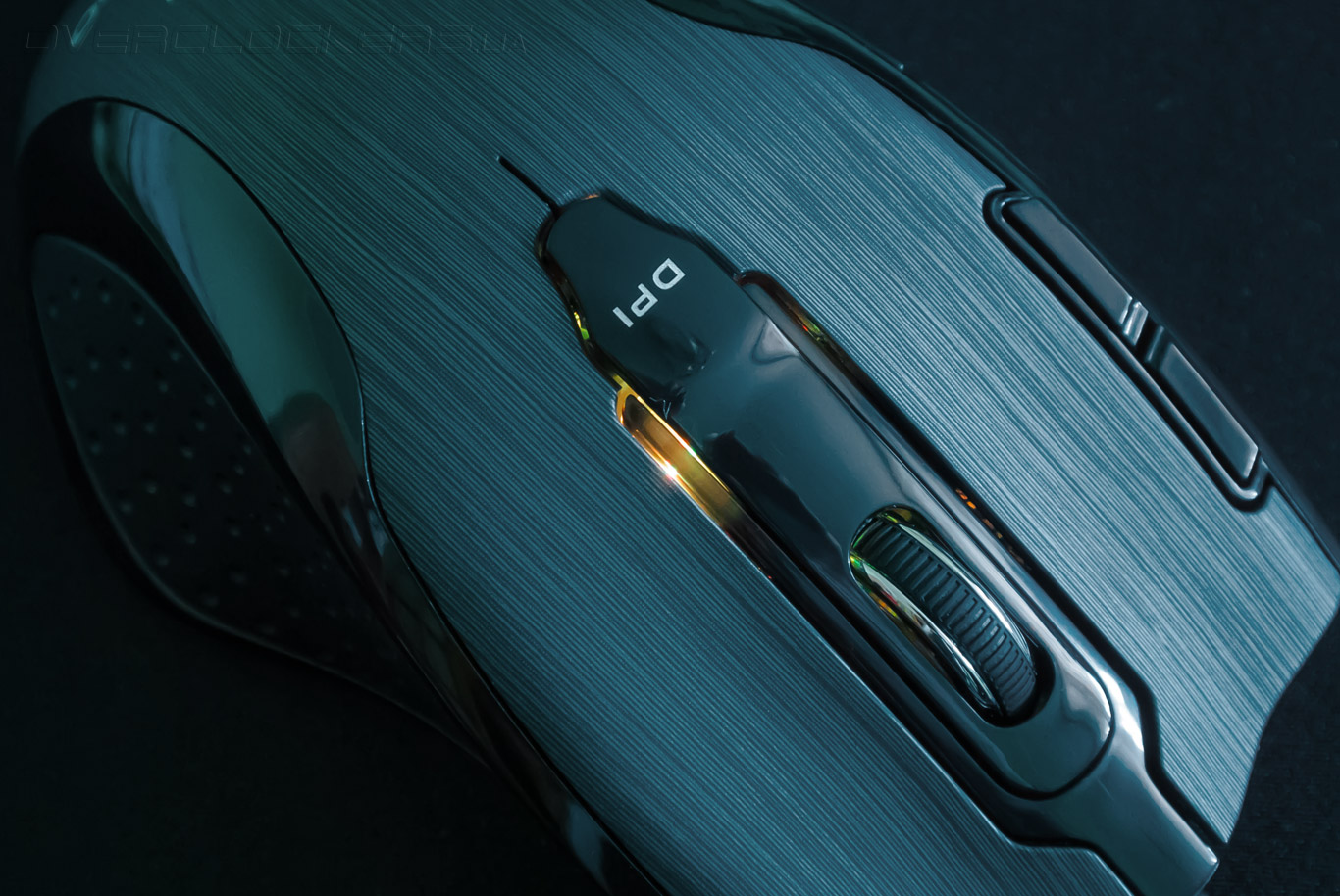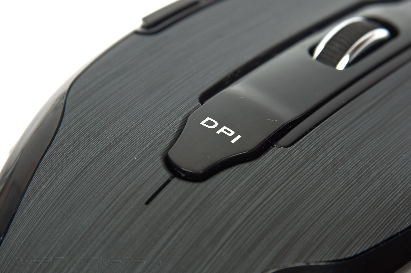 На вышеупомянутой продольной вставке по центру верхней панели дислоцируется переключатель DPI. Его функционирование связано с последовательной сменой пяти уровней чувствительности лазерного сенсора. Активация происходит проблематично из-за чрезвычайно жёсткого хода. Всё это сопровождается неприятным звуковым сопровождением.