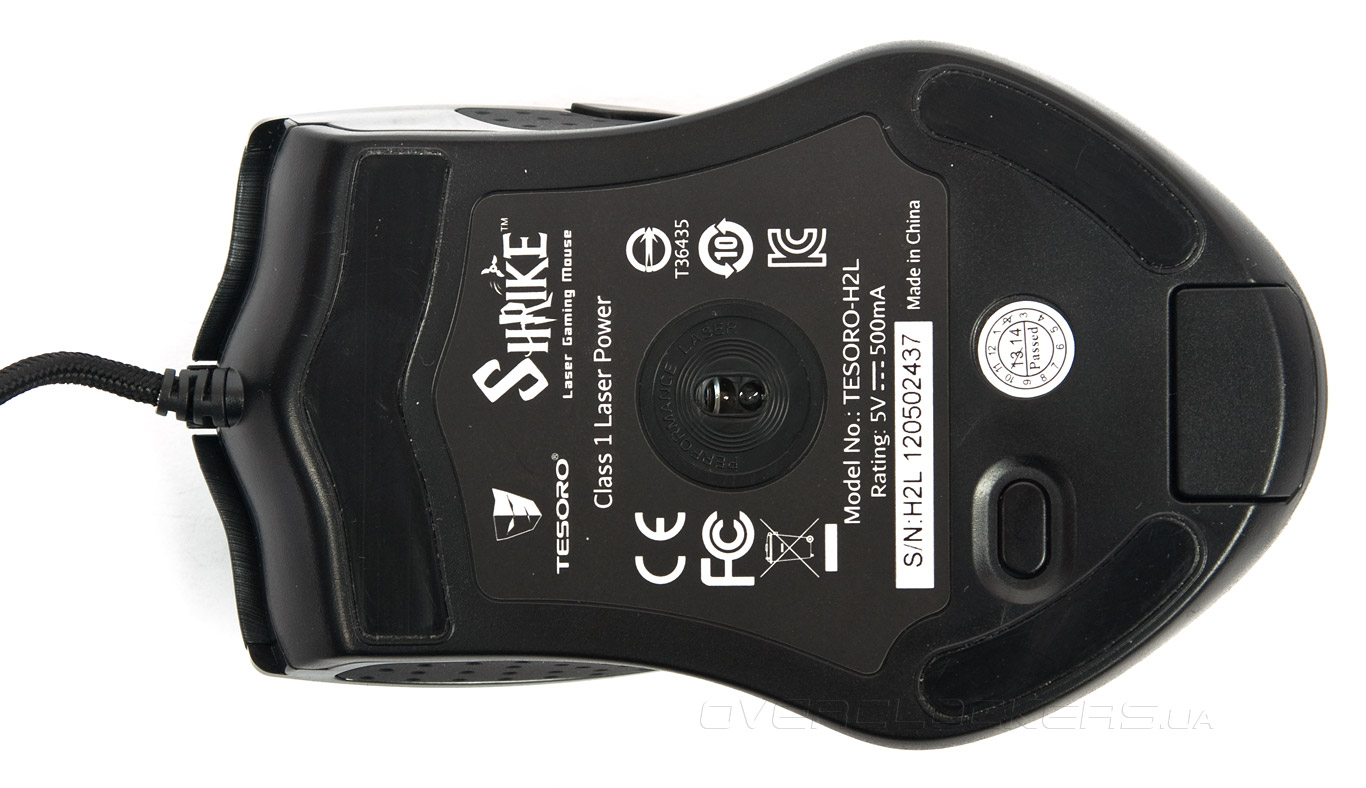 За быстрое скольжение мышки ответственны три тефлоновые ножки. Сверху днища размещена одна широкая накладка, а снизу закреплены две ножки меньших размеров.