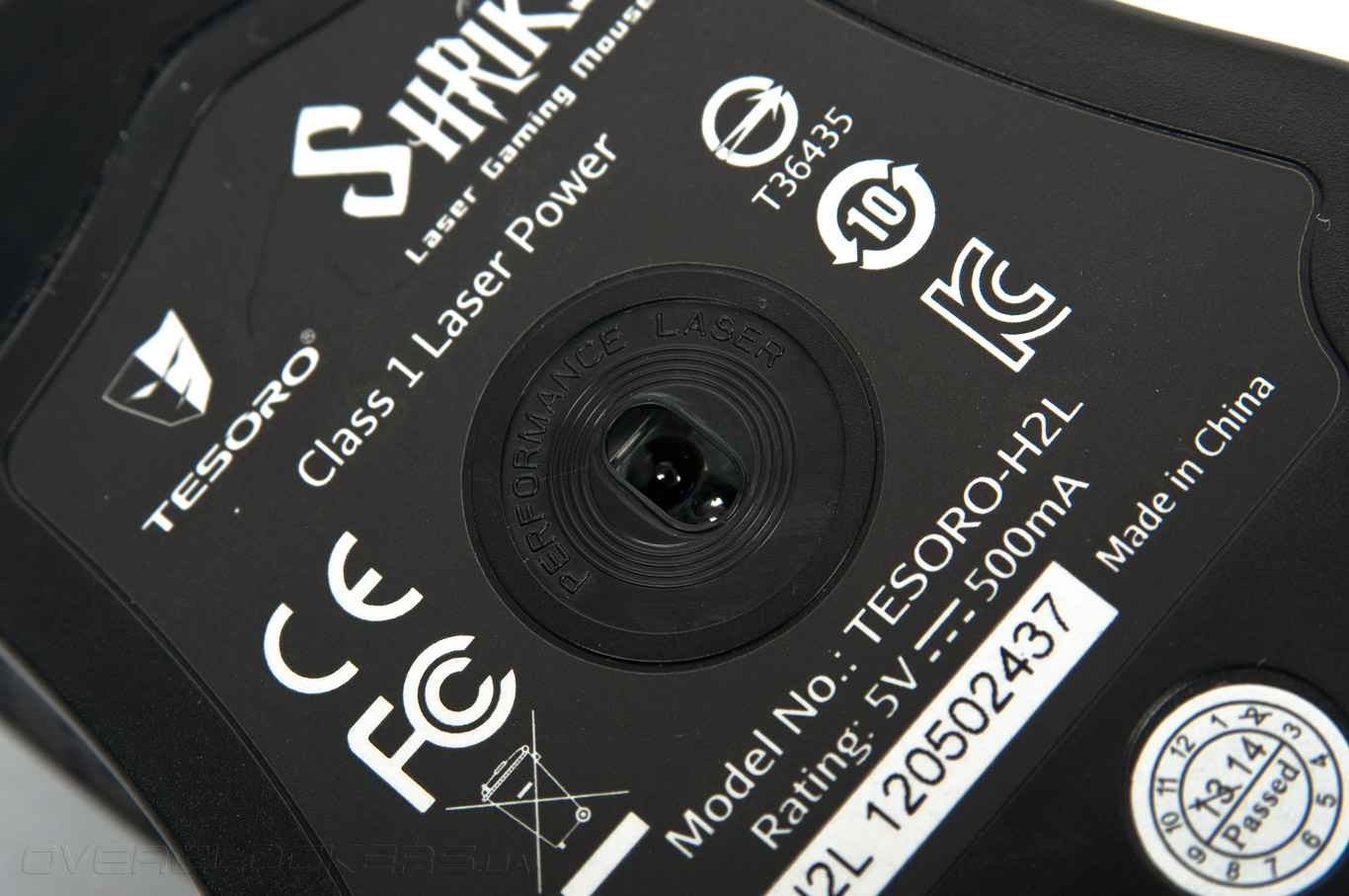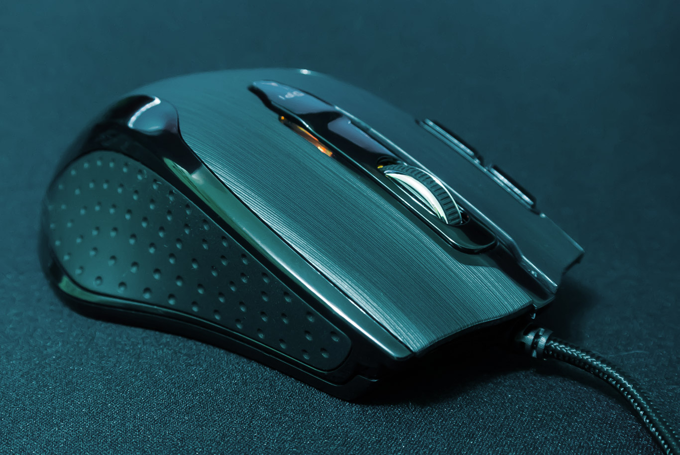 В центральной зоне вмонтировано окошко лазерного сенсора ADNS-9500 производства компании Avago Technologies. Эта модель нашла своё применение в Corsair Vengeance M90, Gigabyte M8000X, Mionix NAOS 5000, ROCCAT Kone[+], SteelSeries Xai и т.д. Датчик работает в диапазоне 400–8200 dpi с максимальной скоростью перемещения 3,5 м/сек и ускорением 30 g.