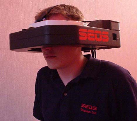 Огромный SEOS 120/40 HMD весил не меньше килограмма, и в нем были задействованы два LCD-экрана, на которые выводилось изображение в 1280x1024, создавая обзор в 120 градусов по горизонтали и 67 по вертикали, что впечатляет даже по сегодняшним меркам. Сам же шлем был использован в основном для симуляции вождения и полета.