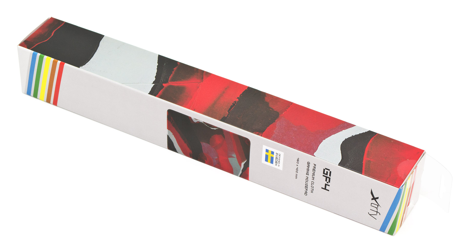 Для тестирования мыши Xtrfy MZ1 компания любезно предоставила нам фирменный коврик Xtrfy GP4 формата Large Speed в расцветке Abstract Retro. Размеры поверхности составляют 460х400х4 мм, вес — приблизительно 250 грамм. Поставляется в продажу вот в такой упаковке: