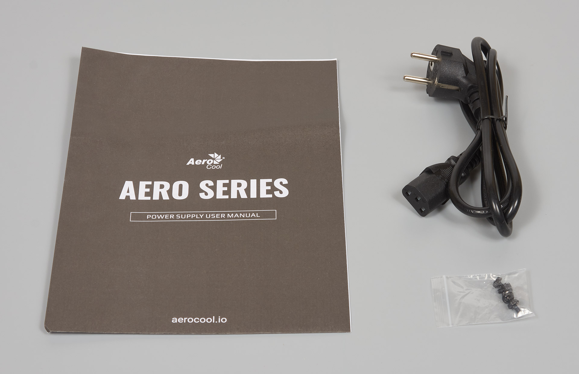 Комплект поставки стандартный для бюджетных блоков: силовой кабель питания, пакетик с винтами крепления и инструкция.