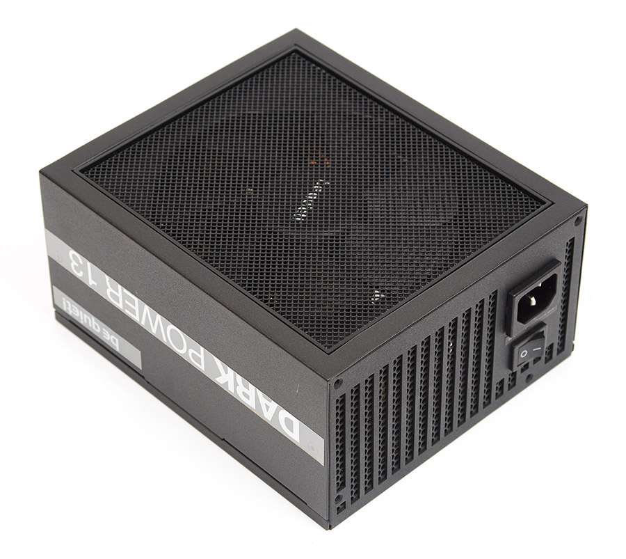 Корпус блока имеет оригинальную конструкцию, окрашен черной порошковой краской, на одной из боковых граней расположена металлизированная надписи Dark Power 13, на другой боковой грани наклейка с техническими характеристиками блока.