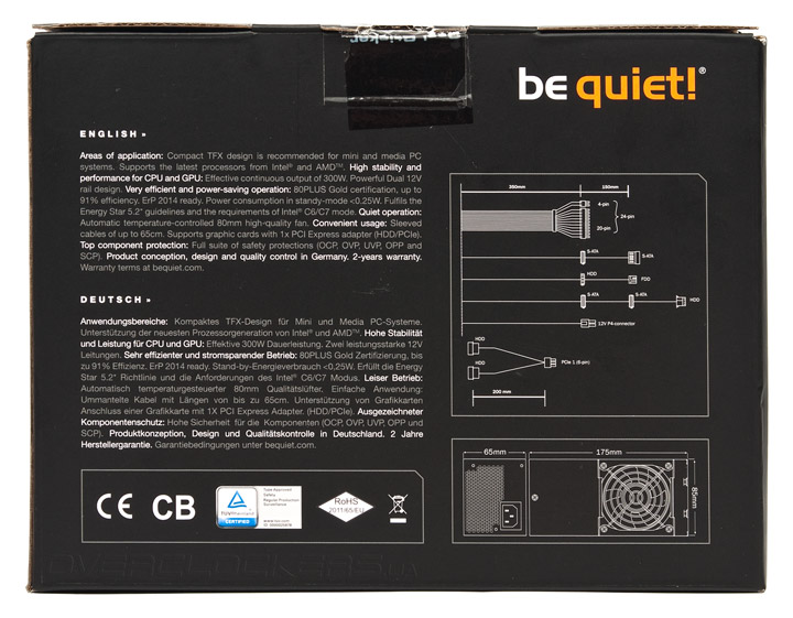 К сожалению, из-за своих хоть и не больших размеров выше указанный формат блоков питания не позволяет строить тонкие ПК, они по-прежнему будут громоздкими. Для этих целей подходят уже либо встроенные решения, либо формата TFX. С корпусами такие устройства поставляются самые обычные, с повышенным уровнем шума. Для самостоятельных сборщиков и энтузиастов некоторые производители предлагают тихие источники питания с повышенным КПД, например, be quiet! SFX Power 2 300W, который мы как раз и рассмотрим в этом материале.
