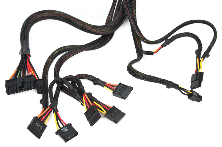 Кабели не отстегивающиеся, что и не удивительно для такого устройства, но они все заключены в нейлоновую оплетку, которая позволит аккуратно расположить провода в системном блоке. Общее количество следующее: