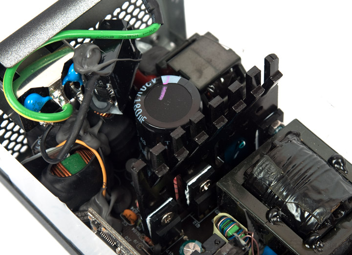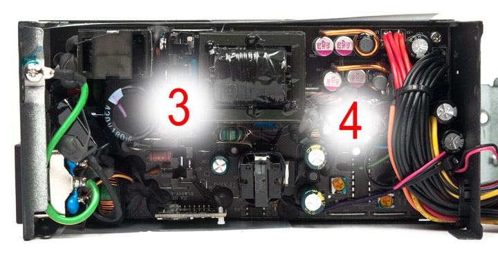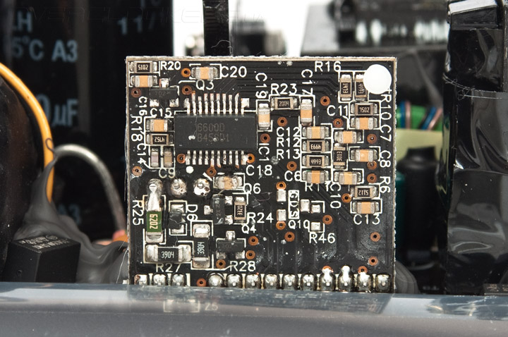 Сам же блок управляется ШИМ-контроллером FSP6600D, отвечающим также за APFC, расположенным на отдельной платке.