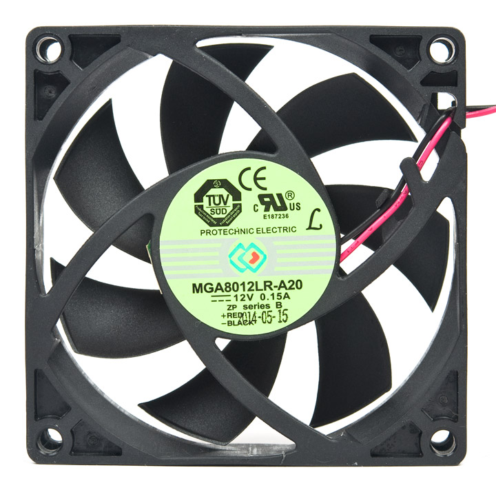 За приемлемый температурный режим TFX2G-300W отвечает низкопрофильный 80-мм вентилятор MGA8012LR-A20 от Protechnic Electric с двухконтактным подключением и частотой вращения около 2200 об/мин. Основан он на подшипнике скольжения с нарезанной втулкой, а значит, обещает быть тихим.