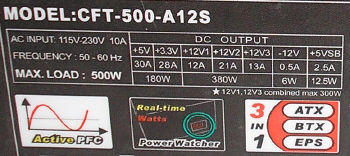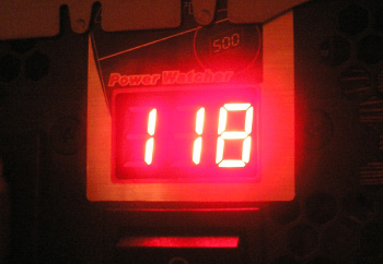 При полной нагрузке - не более 128 Вт. Насколько правдивы показатели, трудно сказать, мне пока не известно, измеряются ли все линии питания или только часть. Но со временем, я надеюсь получить ответ на этот вопрос.