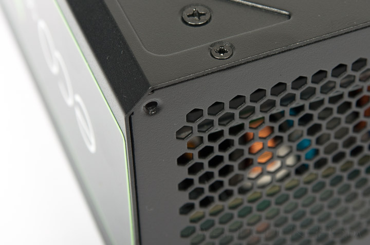 Сам блок питания внешне ничем не отличается от бюджетных конкурентов для розничного рынка: черный корпус соседствует со штампованной решеткой над вентилятором.