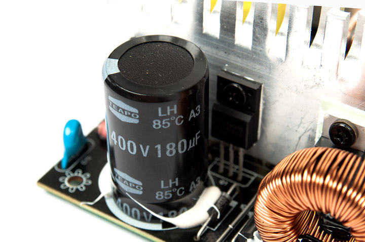 Высоковольтная емкость немного изменилась — теперь установлен конденсатор на 180 мкФ с рабочим напряжением 400 В производства Teapo. Такие же используются и в других цепях.