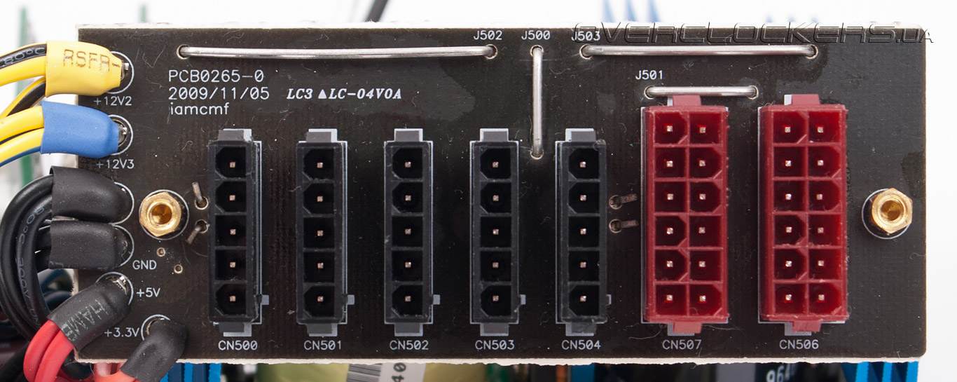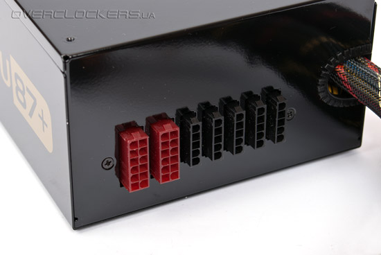 Несмотря на небольшое количество отстегивающихся кабелей в комплекте, разъемы для них на стенке блока питания расположены с запасом: пять для периферии и два для видеокарт, что позволит собрать CrossFireX- или SLI-систему. И если за рубежом приобрести дополнительные кабели можно без проблем, то отечественному пользователю в этом повезло меньше всего.