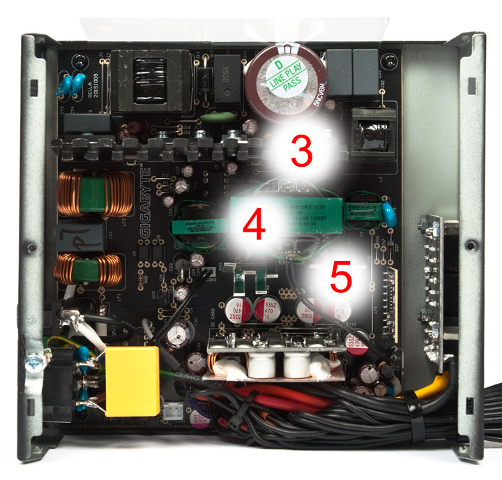 Из особенностей данной платформы можно отметить наличие отдельных проводов, подключенных к импульсному трансформатору, и перемычки, проходящей через пол блока питания. Возможно, они как раз относятся к системе контроля оборотов вентилятора.