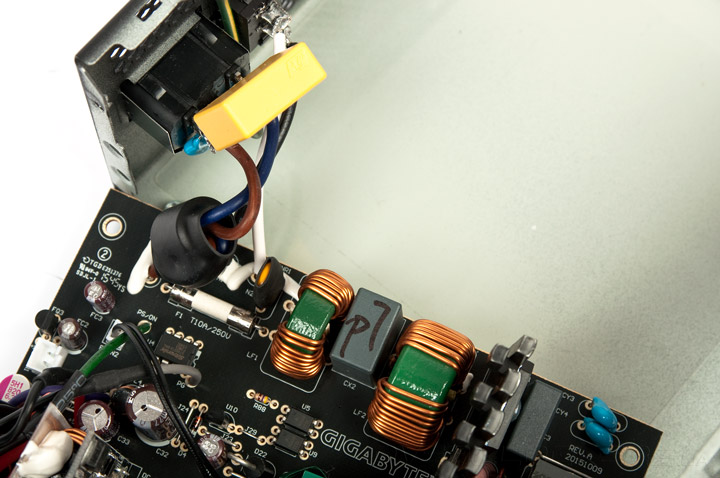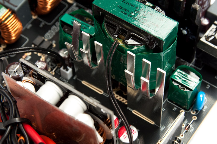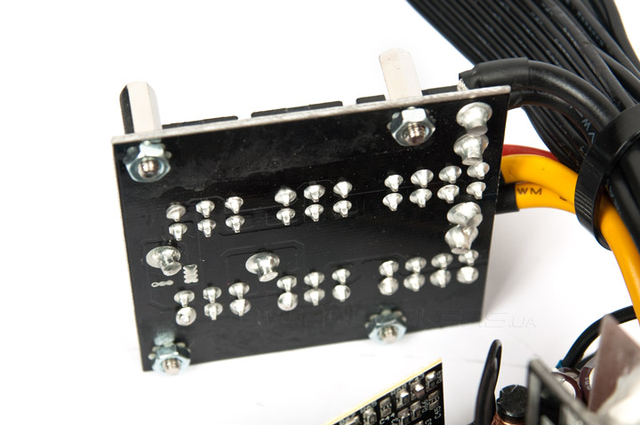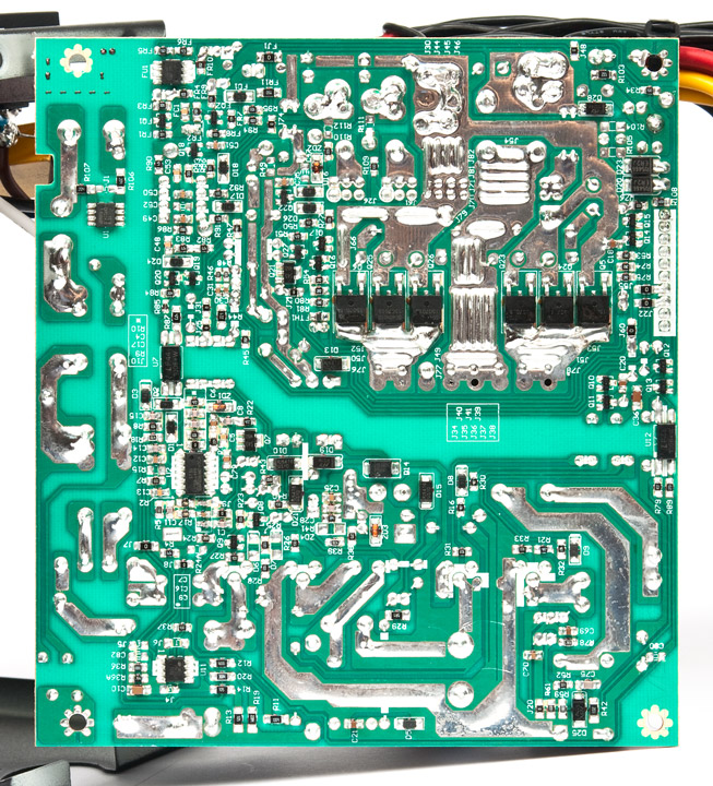 Из особенностей данной платформы можно отметить наличие отдельных проводов, подключенных к импульсному трансформатору, и перемычки, проходящей через пол блока питания. Возможно, они как раз относятся к системе контроля оборотов вентилятора.