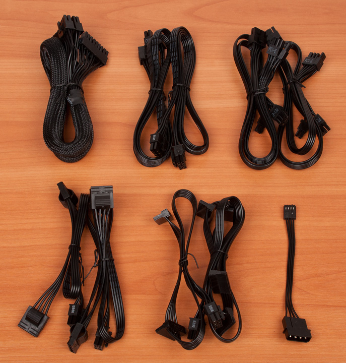С моделью на 750 ватт количество кабелей для питания видеокарт уменьшено до четырех: