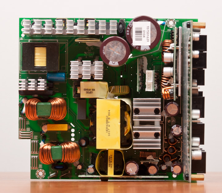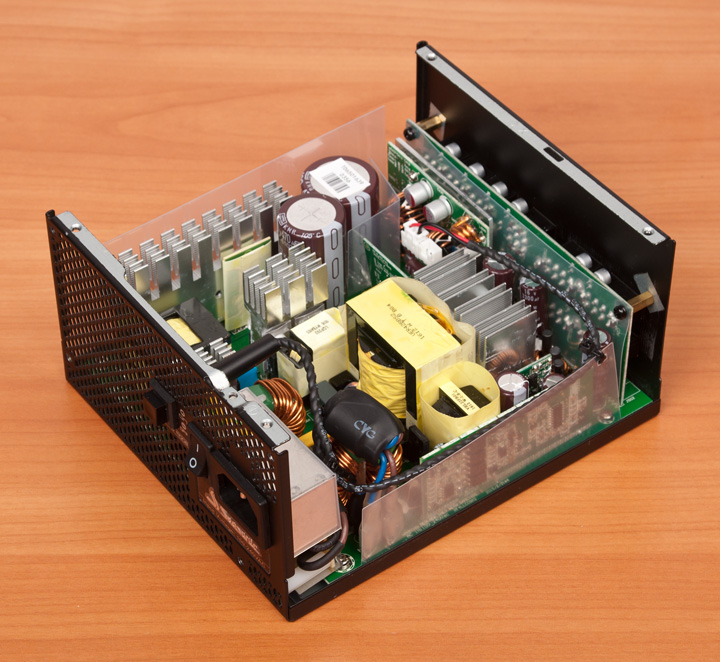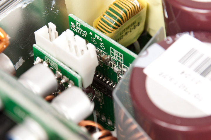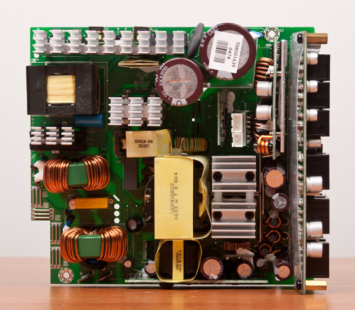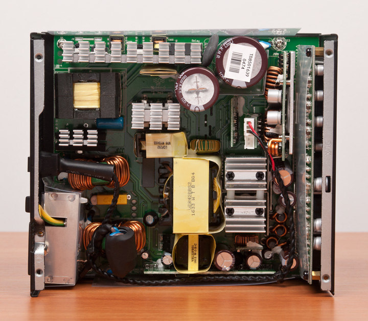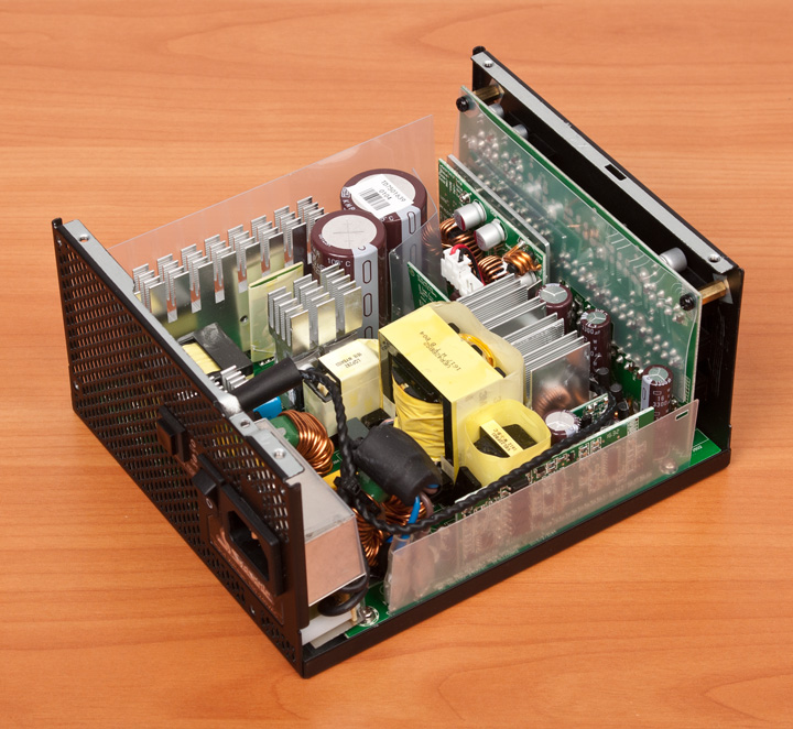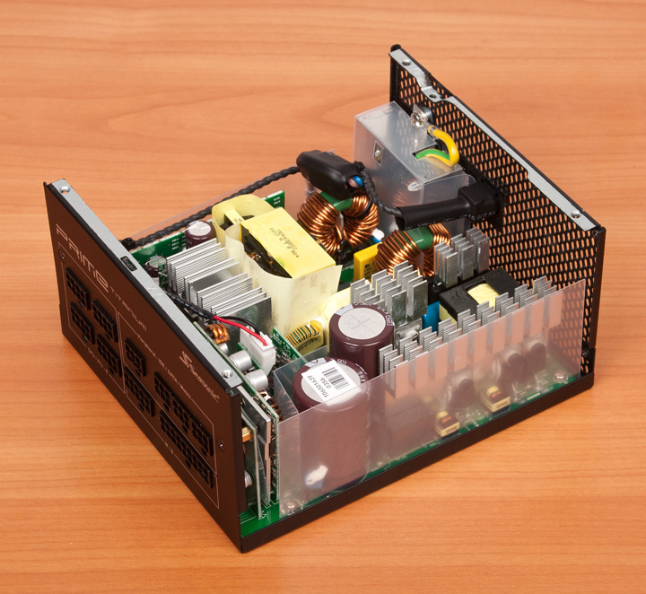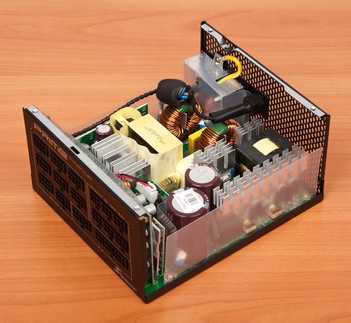 Сняв крышку, видим привычную для Seasonic платформу на базе резонансного преобразователя в высоковольтной части и синхронного выпрямителя в низковольтной. Она уже давно используется, еще со времен появления первых «золотых» решений компании, лишь периодически вносятся кое-какие изменения.