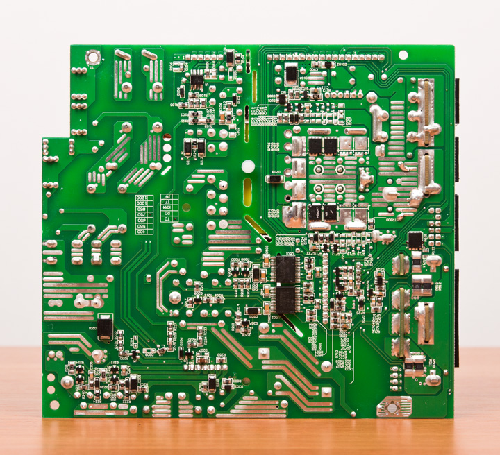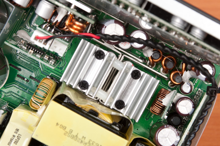 Входная емкость старшей модели представлена двумя конденсаторами Nippon Chemi-Con на 680 и 470 мкФ с рабочим напряжением 400 В, средней — 560 и 470 мкФ, а младшая довольствуется связкой из пары на 470 мкФ.