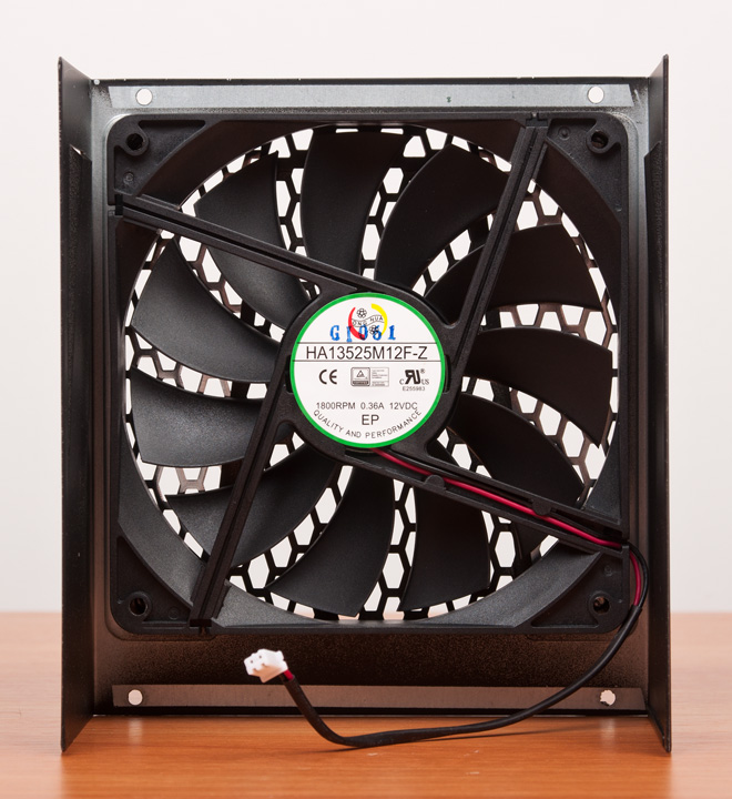 А вот что смутило, так это используемый 135-мм вентилятор HA13525M12F-Z производства Hong Hua вместо привычного 120-мм Sanyo Denki. Но он выполнен на гидродинамическом подшипнике и можно надеяться на невысокий уровень шума в тихом режиме работы пропеллера.