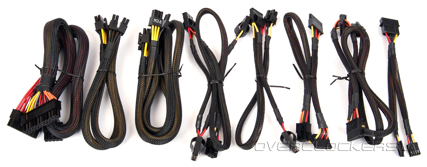 - один с двумя 8-контактными (6+2) разъемами для видеокарт PCI-E (60 см);