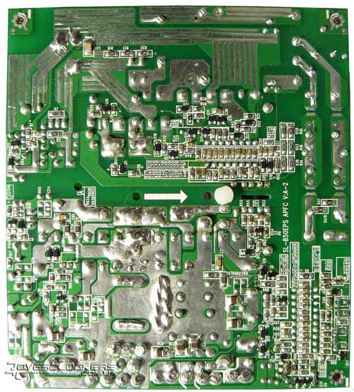 Трассировка платы двухстороння, как и у блока от Sea Sonic Electronics. К качеству пайки никаких претензий нет.