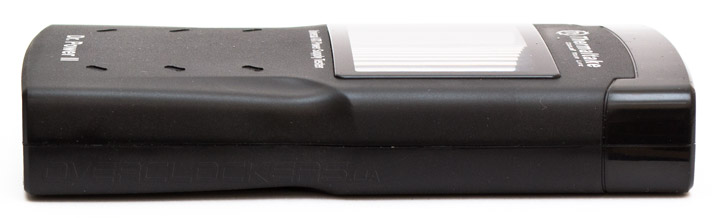 Внешность у Thermaltake Dr.Power II ничем особо не примечательна. Это маленькая черная коробочка с монохромным дисплеем посередине и одной единственной кнопкой сбоку. На фронтальной части над экраном есть логотип компании с лозунгом «делаем твою жизнь круче». Под экраном прямо написано назначение устройства — универсальный тестер блоков питания ATX. А в самом низу указано название модели. Все предельно просто и понятно. Корпус тестера сделан преимущественно из матового нескользящего пластика, если не считать глянцевой вставки сверху, по ободу дисплея и снизу. И кнопки сбоку.