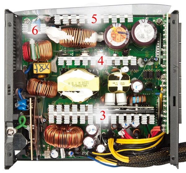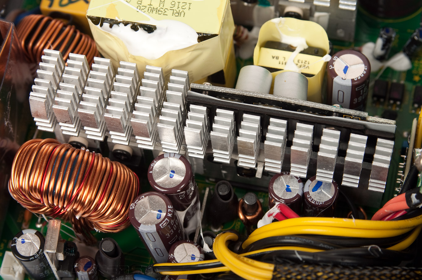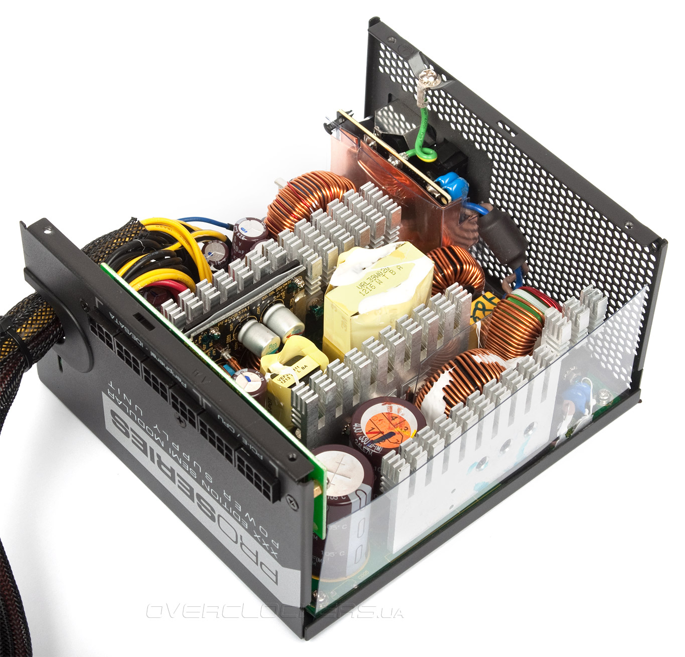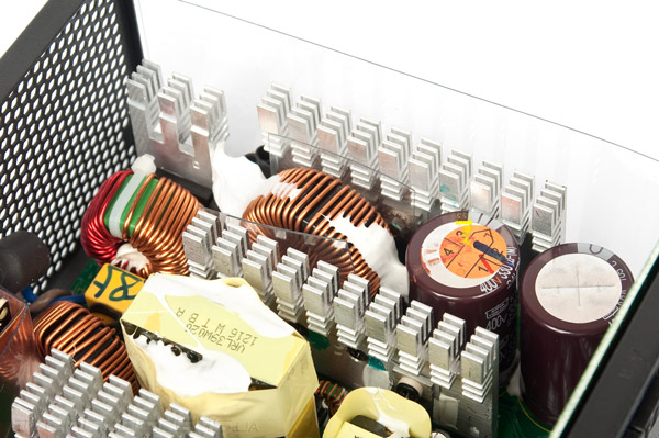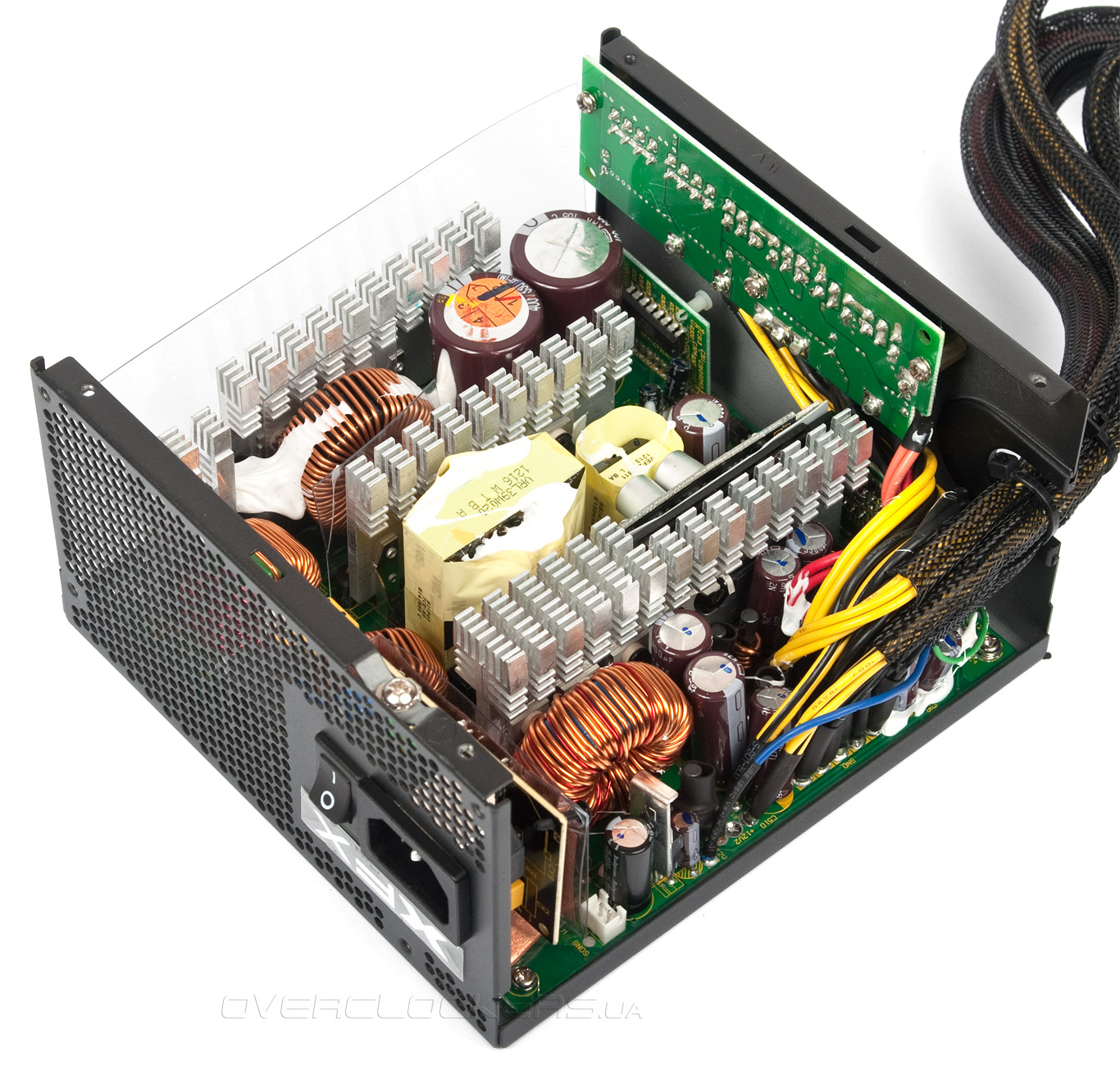 Ну а по сравнению с Seasonic M12D, обладающим большим КПД, блок выглядит проще за счет меньшего количества дросселей во входной цепи и не таких массивных радиаторов, хотя и с большой поверхностью теплоотдачи.