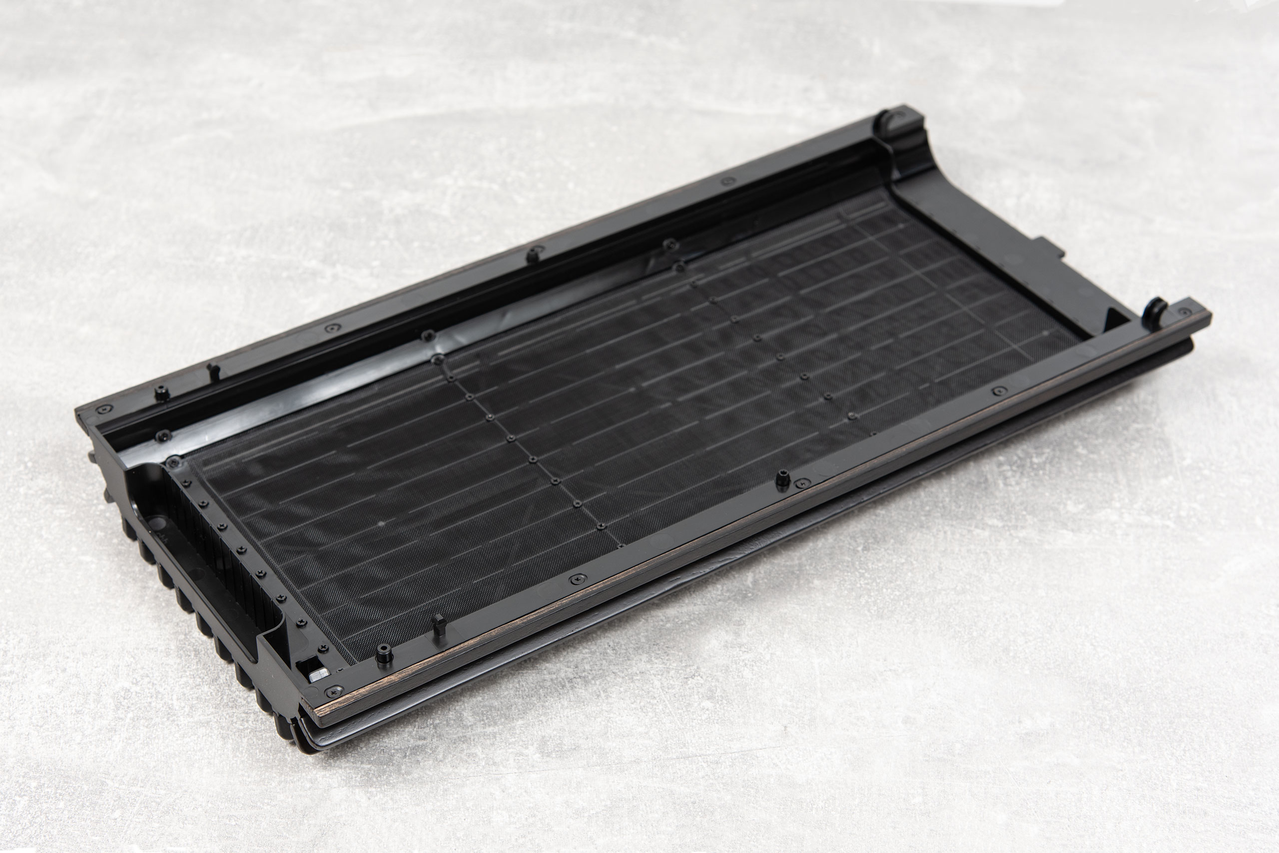 В верхней части корпуса можно установить два 120-мм или два 140-мм вентилятора, но радиатор станет лишь формата 240 мм. Для удобства установки системы охлаждения рамку, которая крепится на один винт и направляющие, можно снять.