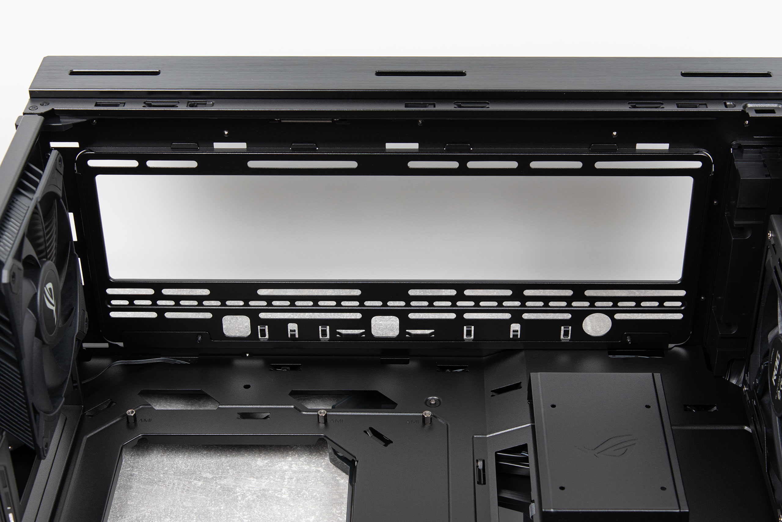 Шасси размером 591×250×565 мм позволяет установить стандартные материнские платы форм-факторов Mini-ITX, Micro-ATX, ATX и EATX. Платы с разъемами на обратной стороне не поддерживаются, хотя это странно с точки зрения того, что ASUS активно внедряет новый формат. Максимальная высота воздушного процессорного кулера может достигать 190 мм, а длина видеокарты — 450 мм, чего хватит для сборки системы из габаритных компонентов.
