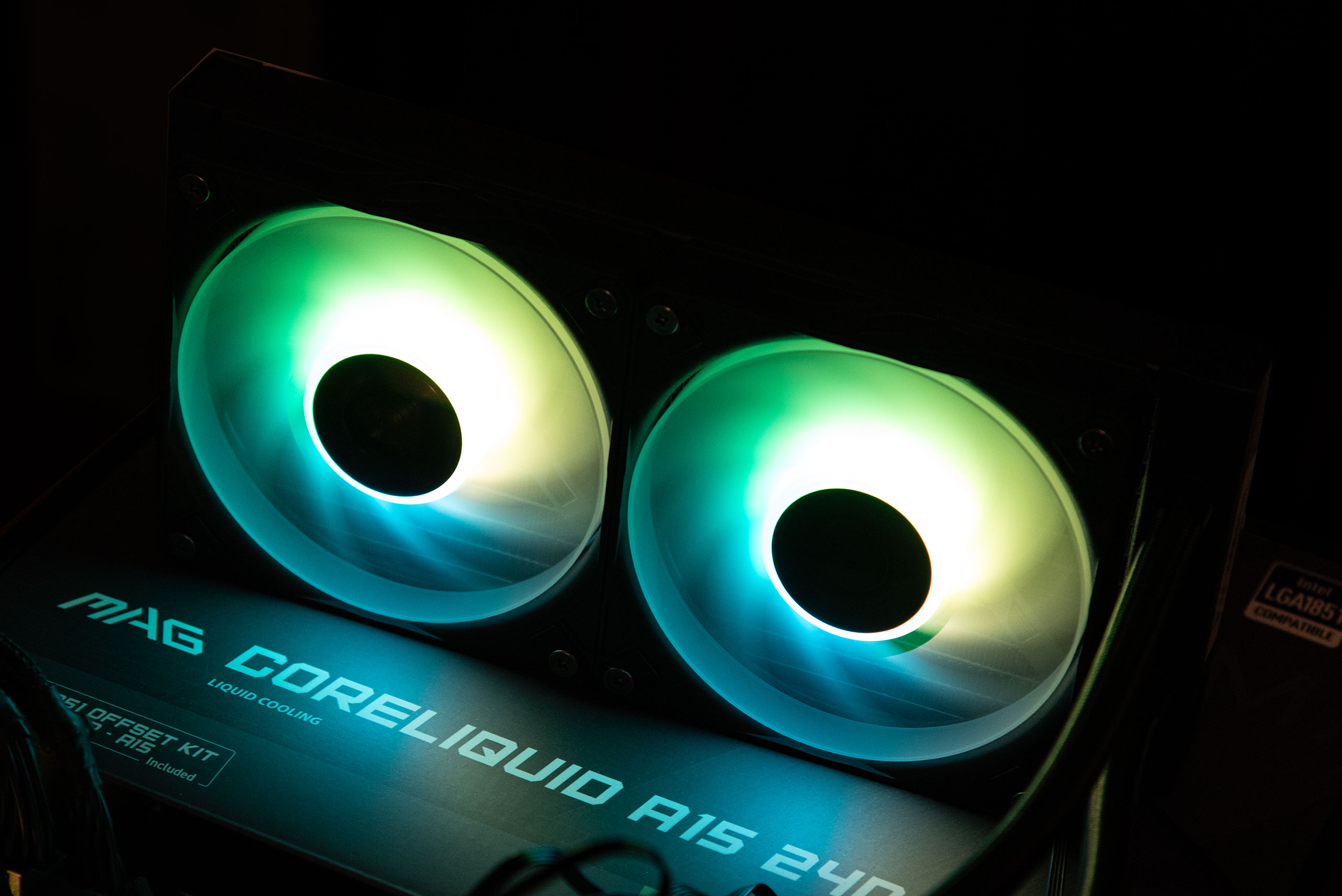 Эффективность новинок неплохая, на максимальной скорости вентиляторов разница между моделями минимальная, а с падением оборотов она увеличивается до семи градусов. Фактически, MAG CoreLiquid A15 240 выступает на уровне хорошего воздушного кулера, тогда как MAG CoreLiquid A15 360 уже демонстрирует производительность, позволяющую охлаждать мощные процессоры.