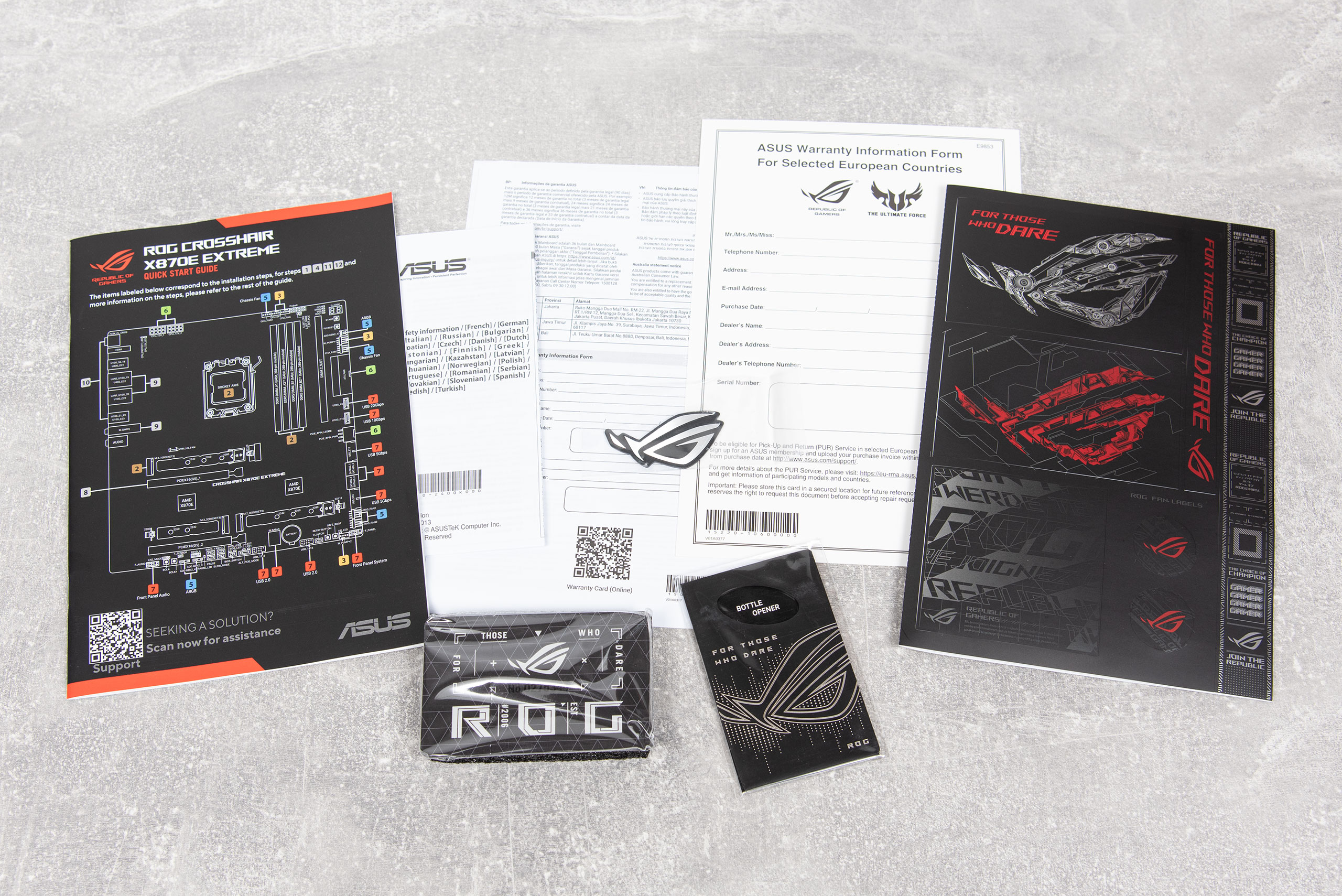Было бы странно видеть материнскую плату класса «для олигархов» без большой увесистой коробки, поэтому производитель сделал все как следует. Она имеет фирменную полиграфию серии Republic of Gamers и выполнена в темных тонах с акцентом на красный.