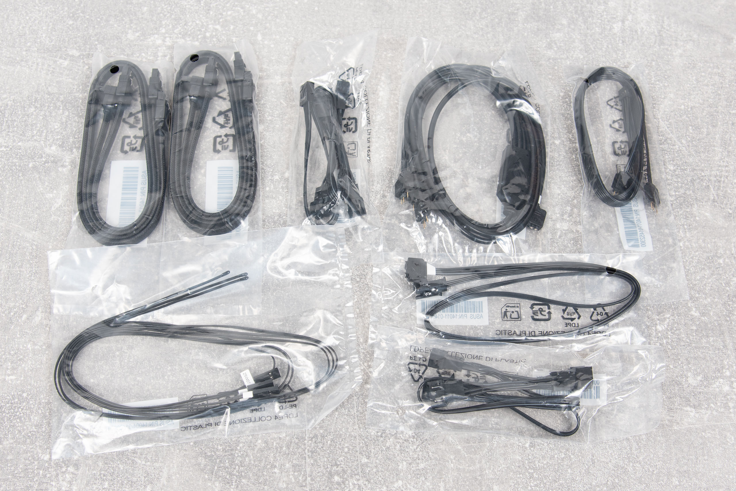 - четыре SATA-кабеля в тканевой оплетке с металлическими защелками (два из них угловые);