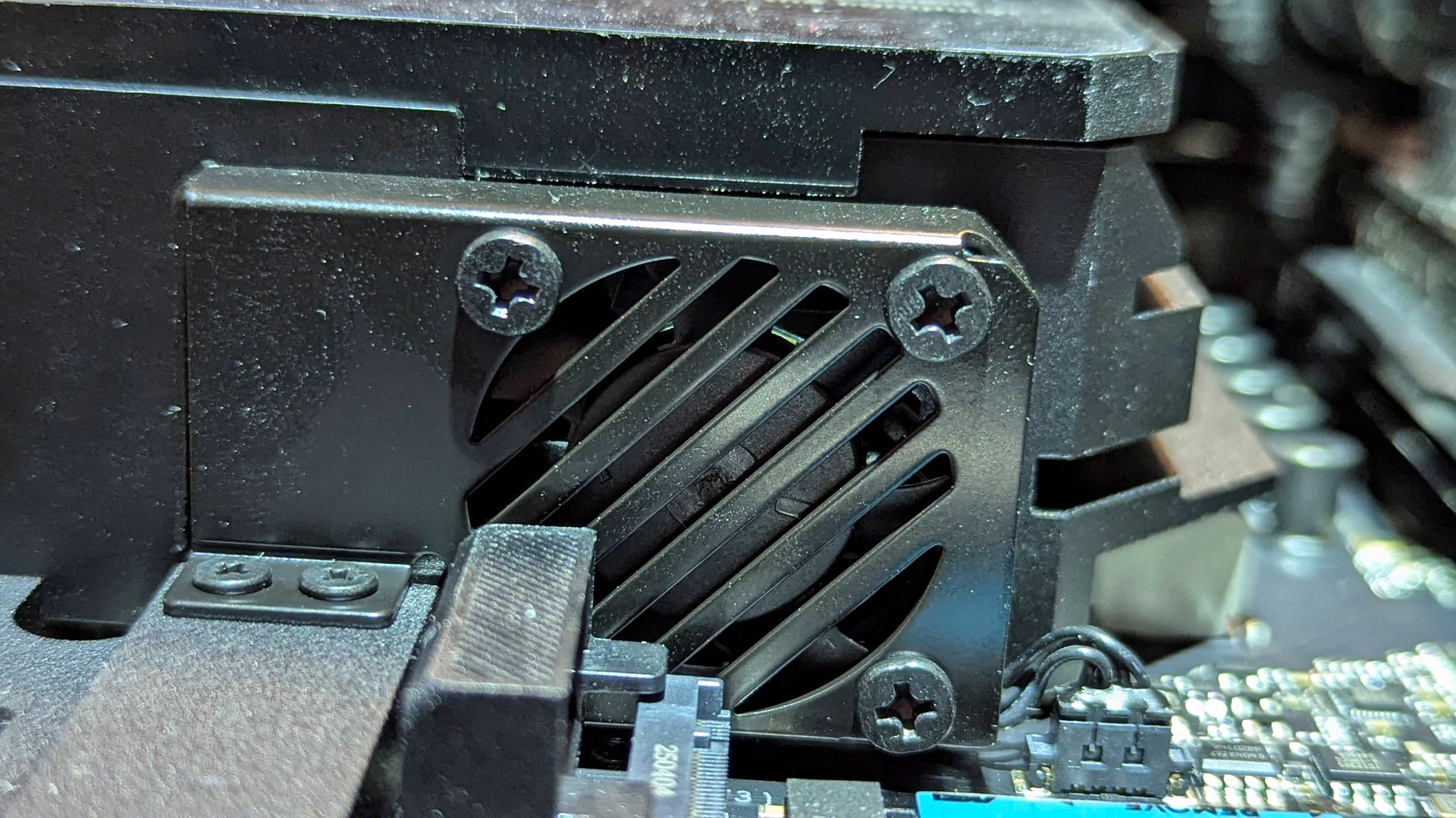 Для улучшения температурного режима зоны VRM производитель добавил в комплектацию ROG Fan Kit. С нижнего края зоны I/O монтируется кронштейн с вентилятором, который нагнетает воздух внутрь бокового радиатора. Вентилятор подключается к проприетарному разъему VRM_HS_FAN. Управлять алгоритмом его работы возможно через соответствующие опции в UEFI материнской платы. Модель: Sunon MF30061V1 (MagLev).