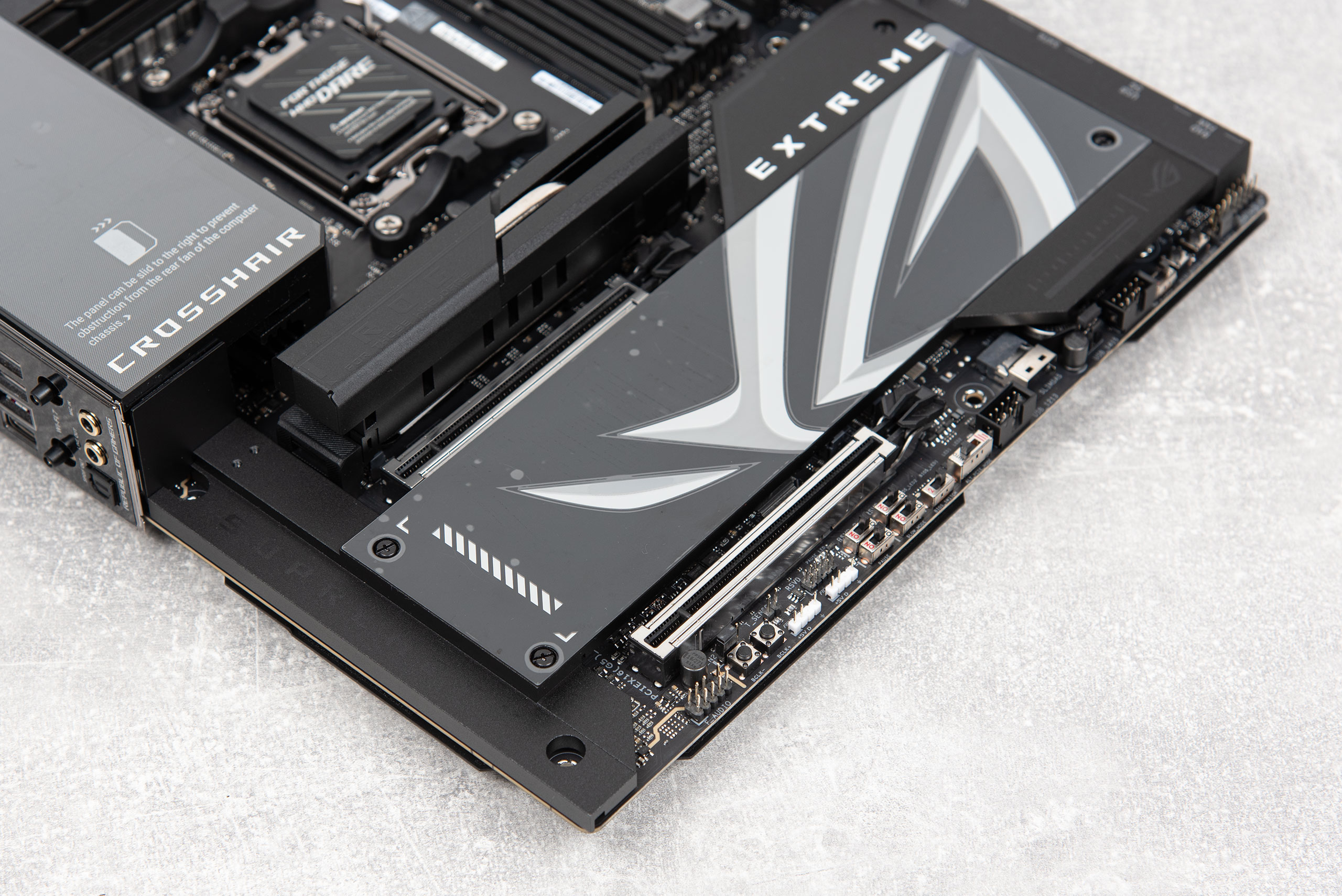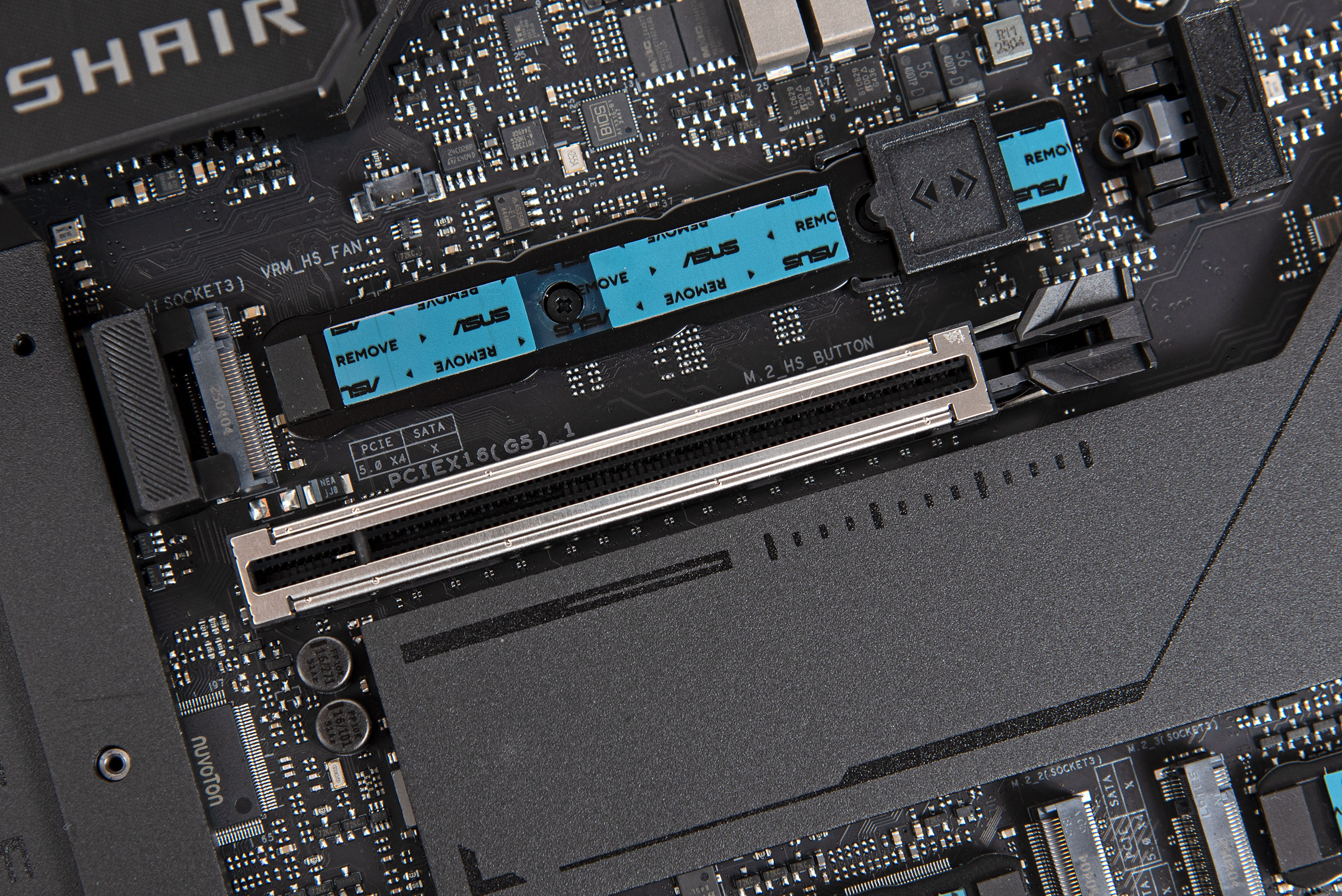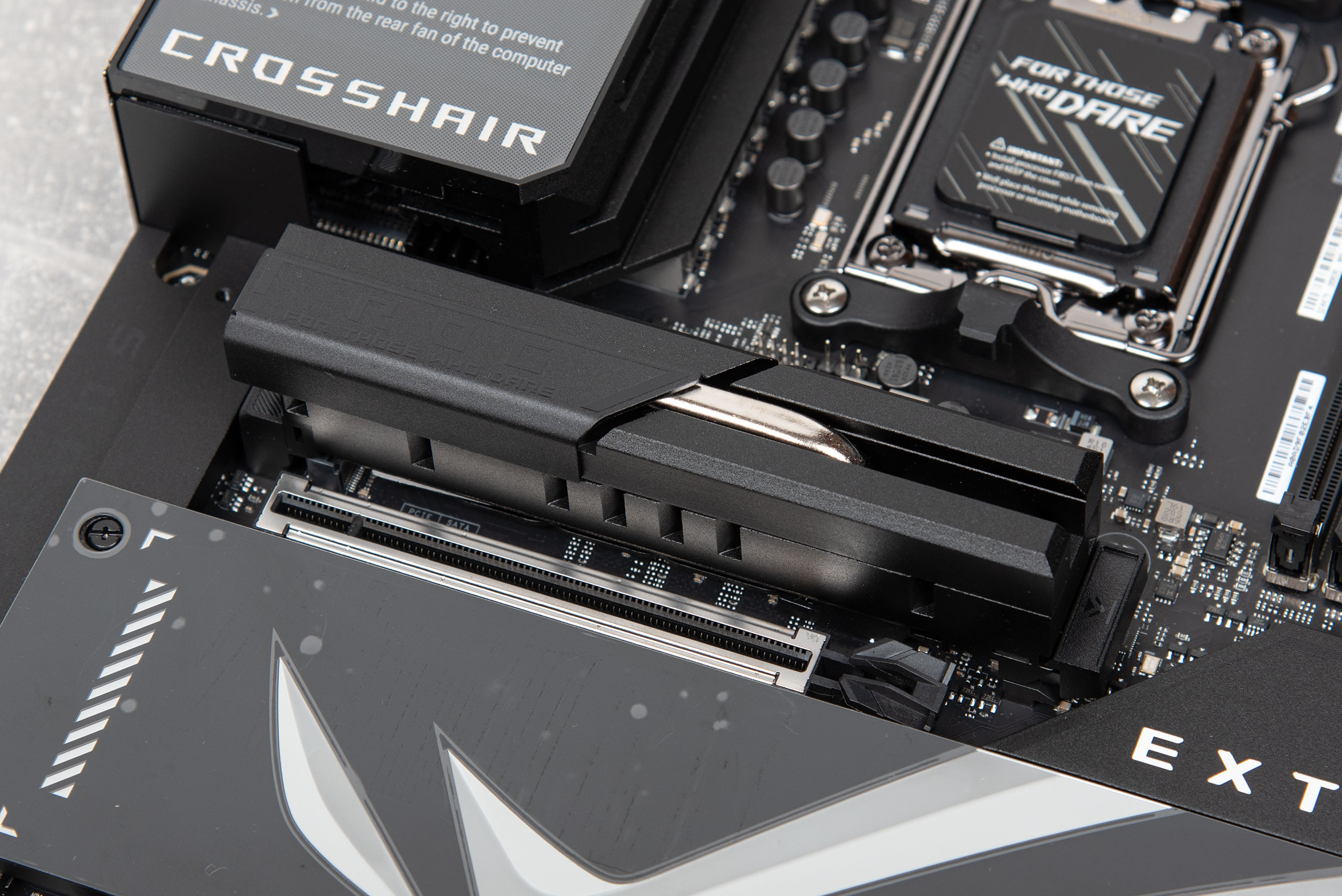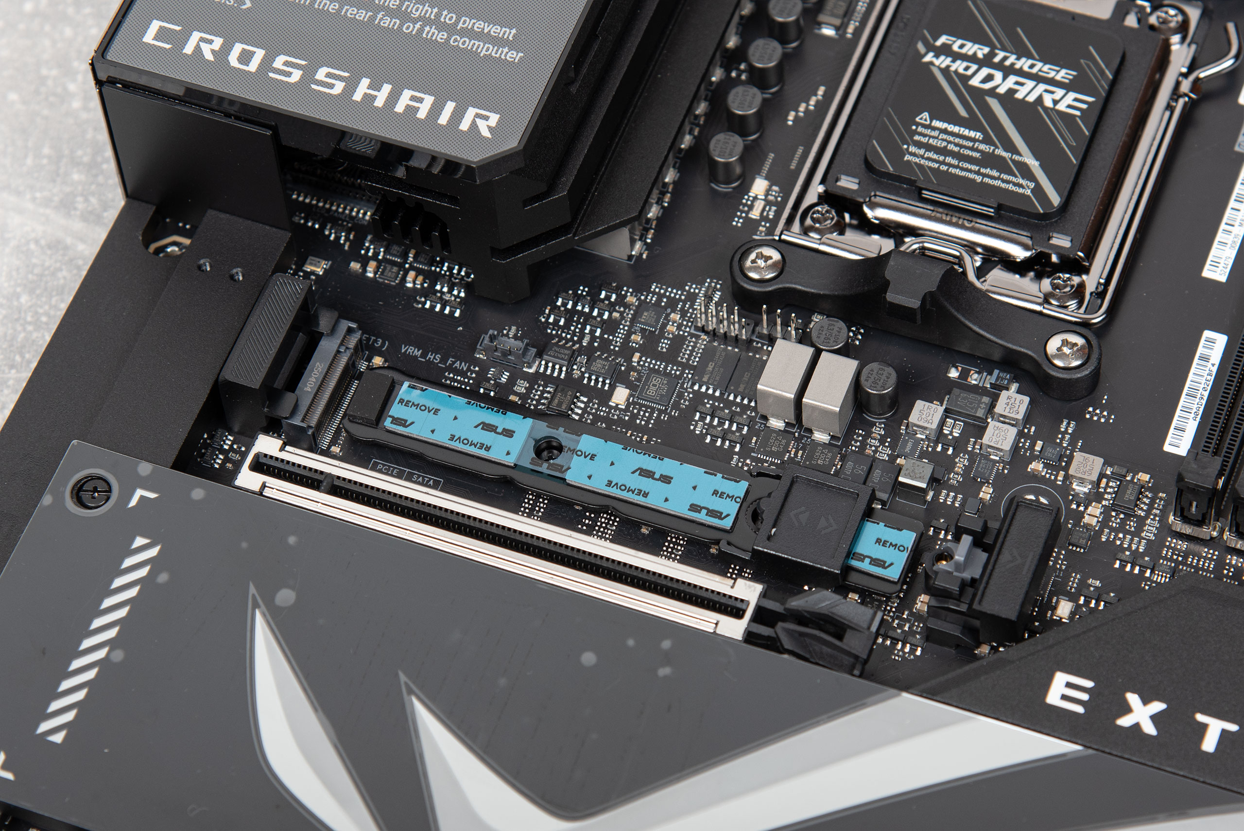 Главный слот M.2_1 имеет арсенал собственных механизмов M.2 Q‑release, M.2 Q‑slide. Поэтому голыми руками можно не просто снять/установить радиатор и накопитель, но и сместить точку крепления, например вместо стандартного 2280 на 2242.