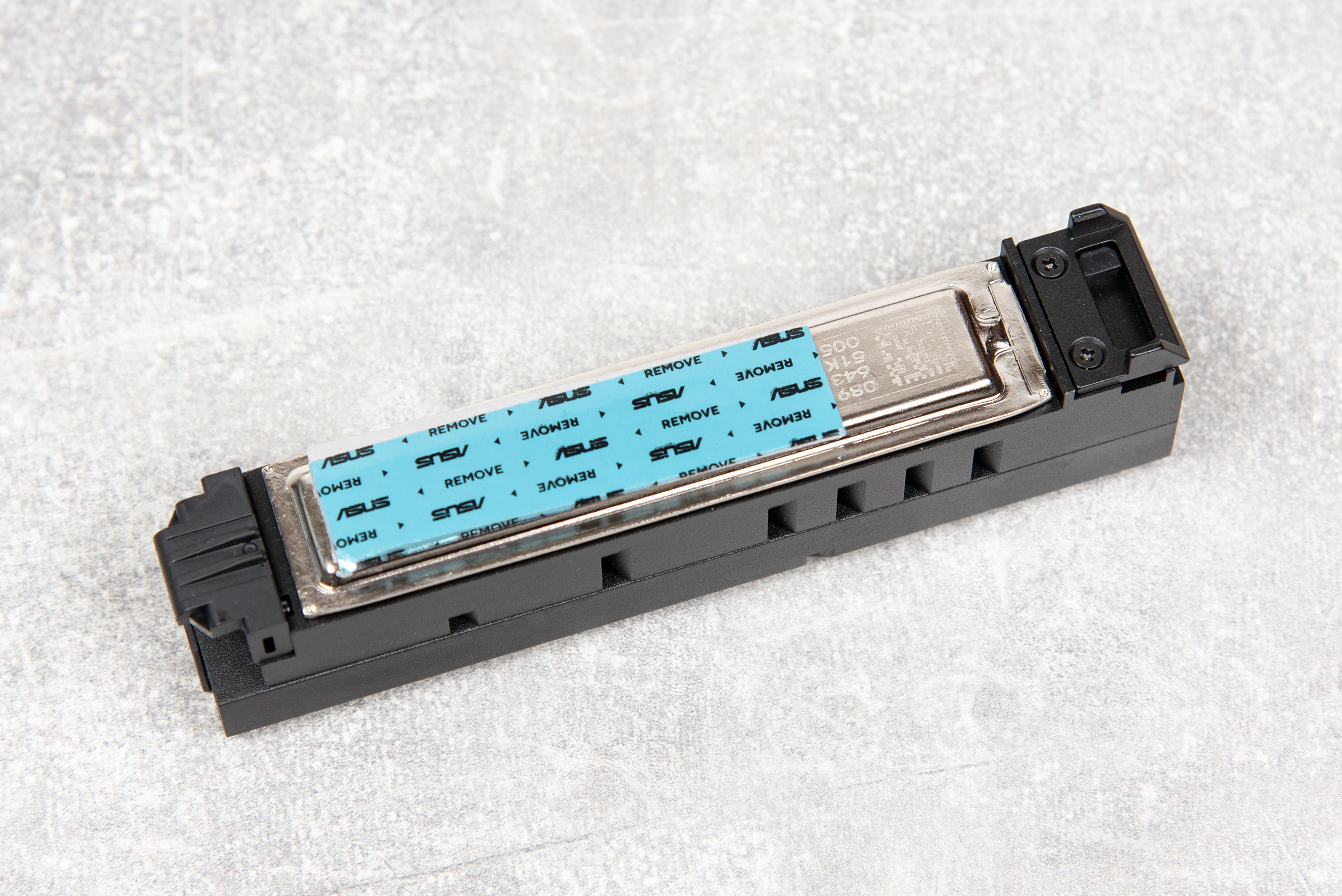 Охлаждение зоны VRM реализовано с помощью двух радиаторов — внешнего и внутреннего. Внутренний выделен контроллеру USB4 на базе ASMedia ASM4242, а также для сетевой карты 10G Ethernet, о которой позже. Внешний занимается охлаждением силовой части. Он имеет спаренную конструкцию на две секции, которые нанизаны на тепловую трубку. Одна из секций расширена до зоны I/O. Фиксация реализована типично, а именно на винтах. Охлаждение целевых элементов осуществляется через термопрокладки.