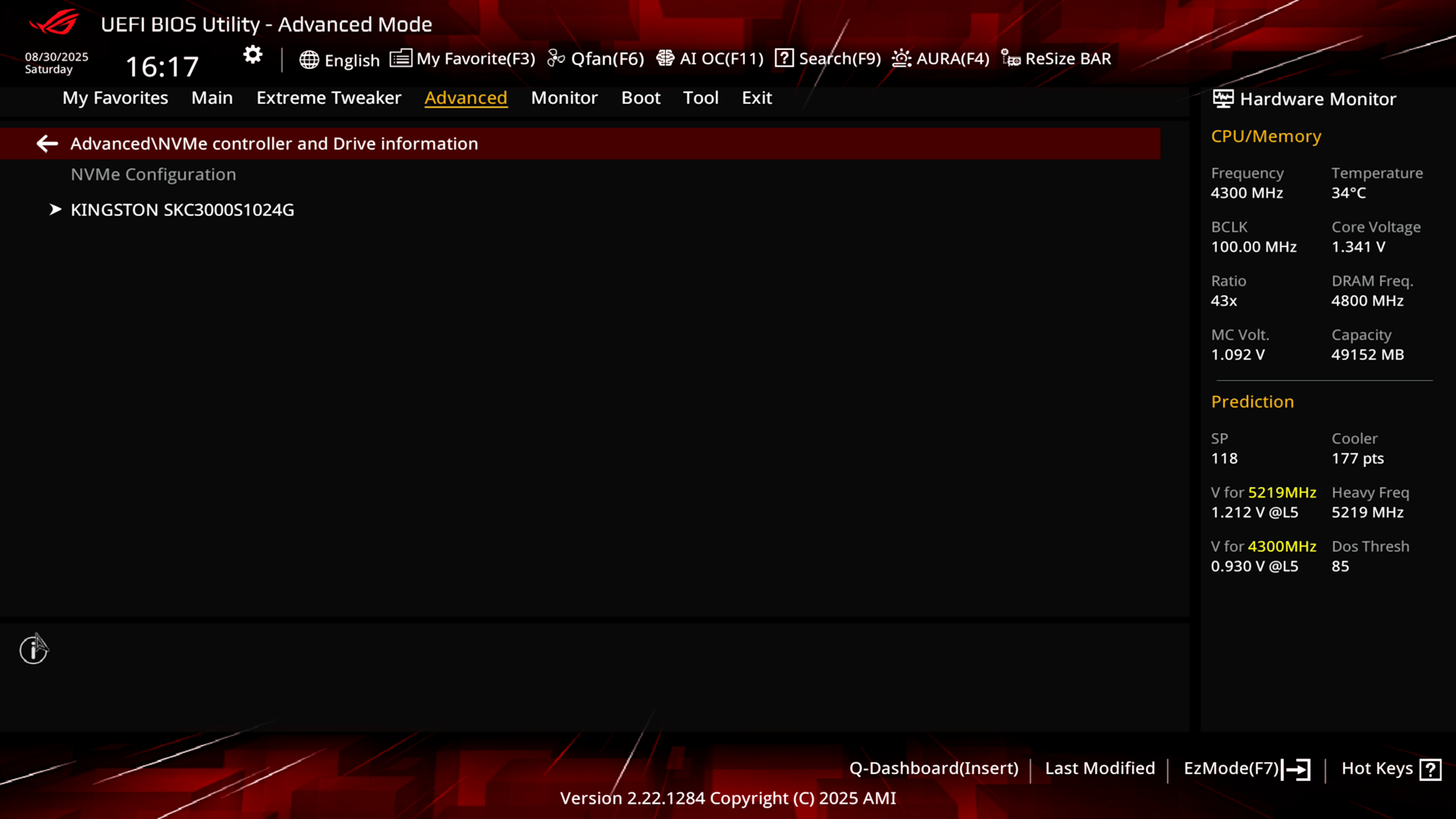 - системный накопитель: Kingston KC3000 1024GB (SKC3000S/1024G);