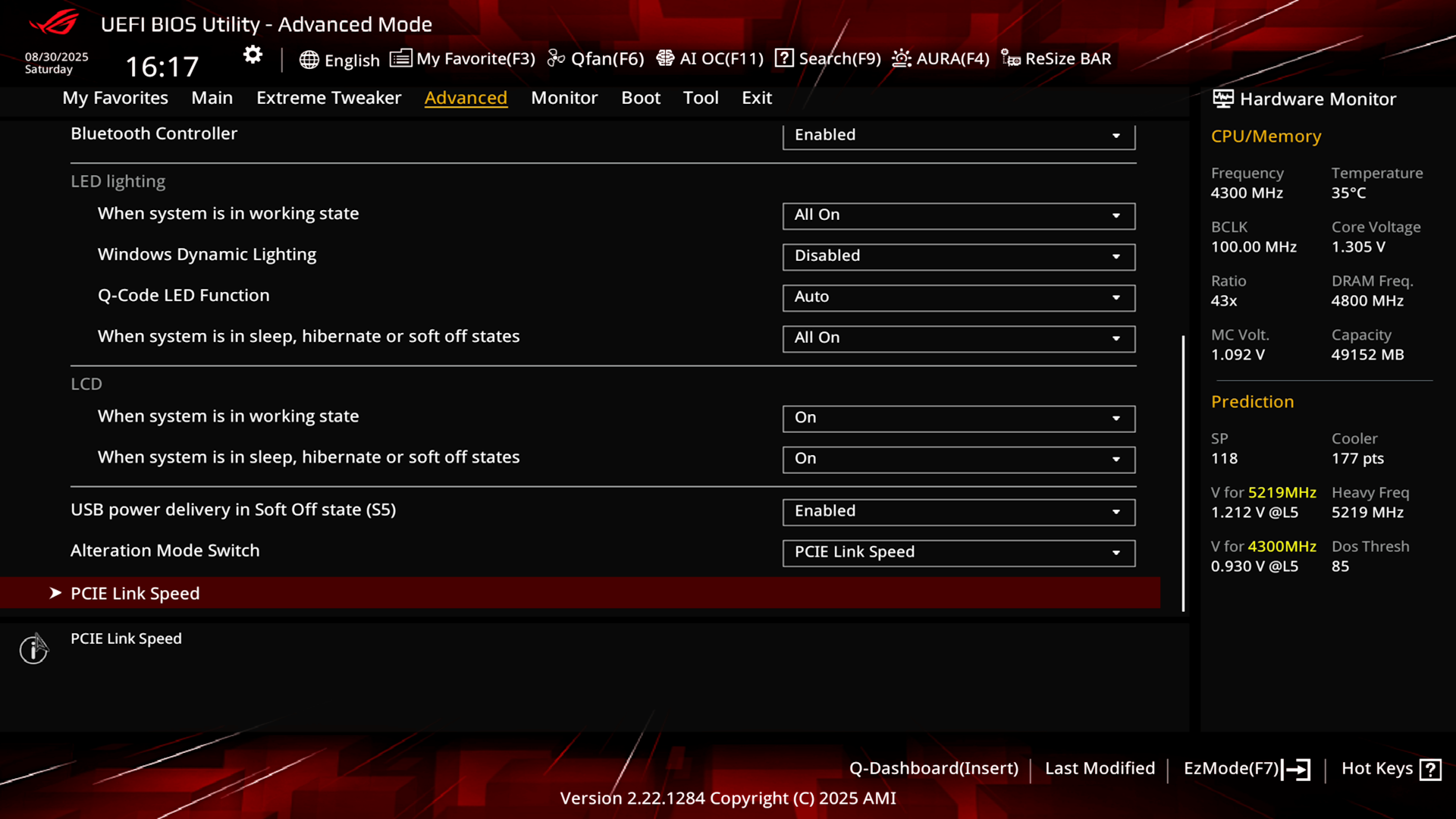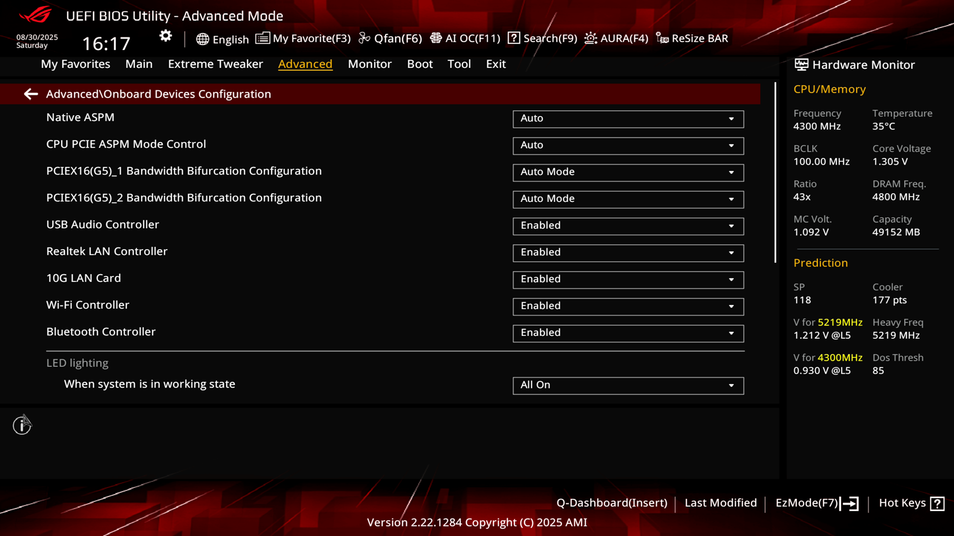 Единственным откровенным минусом является отсутствие регулировки подсветки коннекторов Mini-Jack (яркий красный и зеленый свет), это может раздражать пользователя в ночное время, так как они светятся даже при выключенной системе (но не обесточенной). Далее специфические моменты. ROG Fan Kit для охлаждения VRM, шум вентилятора довольно раздражающий и требует качественной настройки алгоритма работы, не более 4000 оборотов. Это не хорошо для флагманского продукта, хотя похоже именно поэтому он является опцией, а не физически интегрирован в конструкцию. Для некоторых пользователей возмущением станет отсутствие третьего слота расширения PCIe. Дело в том, что предшественники в лице X670E Extreme или Hero имели в конструкции третий слот, поэтому позволяли добавить плату видеозахвата, аудиокарту, или любую другую нужную периферию не конкурируя за линии Gen5. Текущая плата, соответственно, будет вынуждена принести в жертву восемь линий, когда будет задействован второй слот PCIe. Также антенна WiFi использует проприетарные коннекторы, вместо типичных SMA.